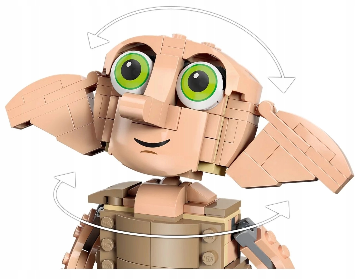 - Ruchoma głowa, uszy, ramiona i palce — ustawiaj różne pozy i dopasowuj dłonie Zgredka, aby mógł trzymać akcesoria zbudowane z klocków