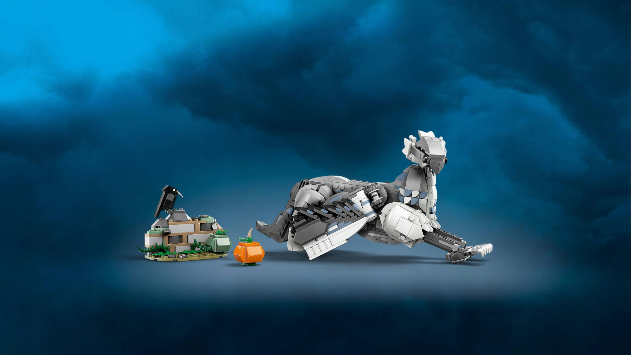 - Ciekawe akcesoria — ten zestaw zawiera sekcję ogrodu Hagrida do zbudowania z kamiennym murkiem, a także dwie dynie do zbudowania i figurkę ptaka