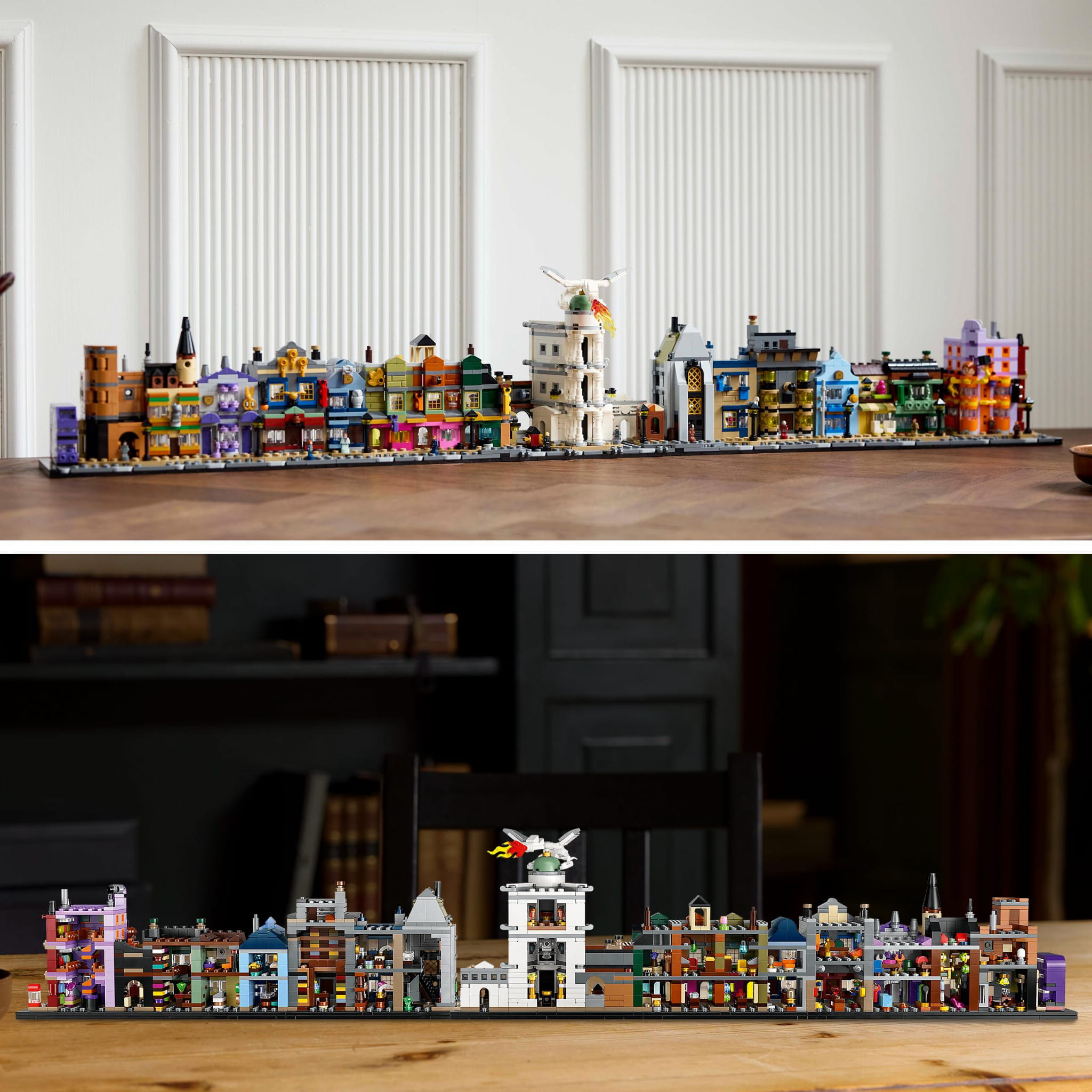 Ten zestaw z klocków LEGO umożliwi dorosłym fanom Harry’ego Pottera odtworzenie kultowych sklepów na ulicy Pokątnej,w tym Magicznych dowcipów Weasleyów, lodziarni Floriana Fortescue, sklepu Ollivandera™, apteki pana Mulpeppera, a także Banku Gringotta™, Dziurawego Kotła i siedziby Proroka Codziennego.