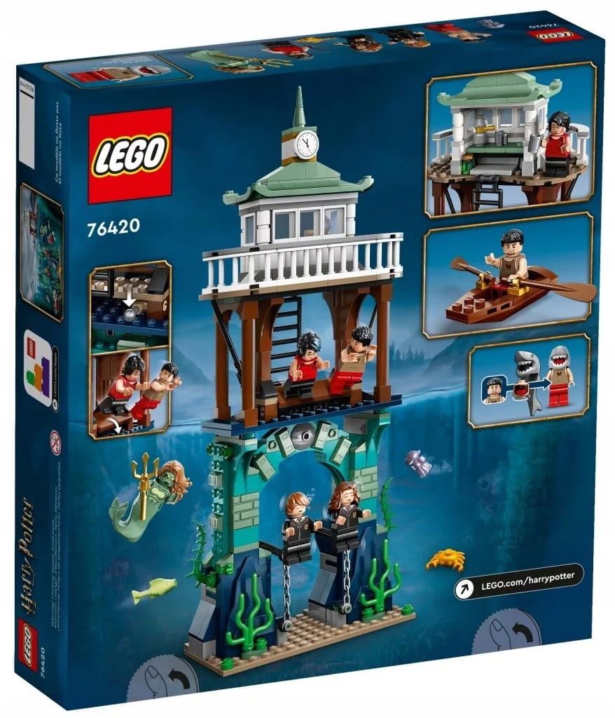 Powołaj do życia klasyczną scenę z Harry'ego Pottera i Czary Ognia™ za pomocą pięciu minifigurek LEGO, w tym Harry'ego Pottera z płetwami i Viktora Kruma z głową rekina, aby pomóc im uratować Hermionę Granger™ i Rona Weasleya™.