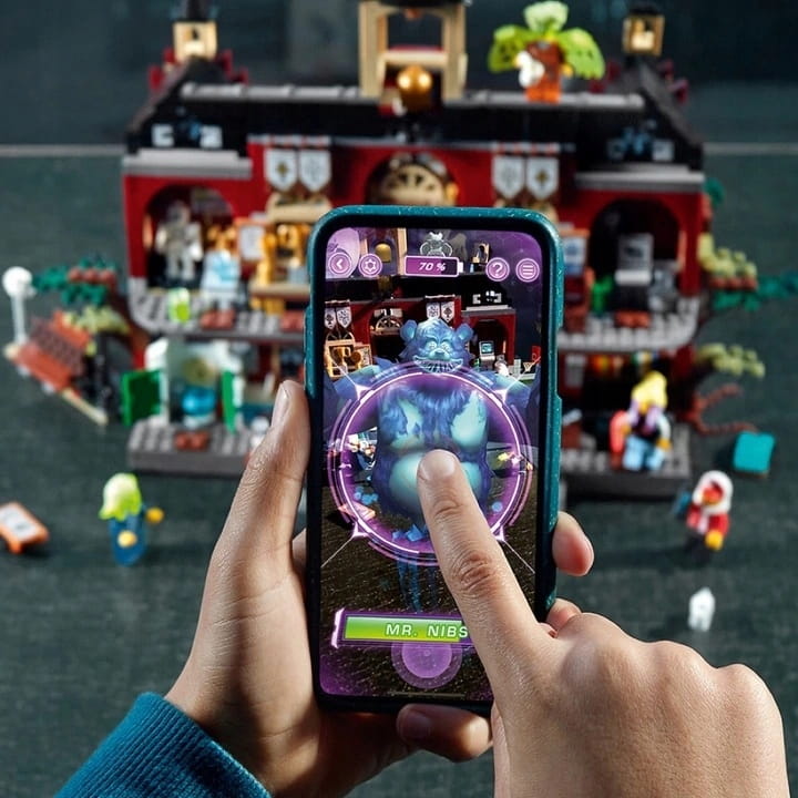 - Korzystanie z rzeczywistości rozszerzonej wymaga użycia smartfona lub tabletu (zestaw nie zawiera żadnego z tych urządzeń). Aplikacja jest zgodna z wybranymi urządzeniami z systemem iOS i Android. Zgodność urządzenia możesz sprawdzić na stronie LEGO. Przed połączeniem się z siecią dzieci powinny zapytać o zgodę.