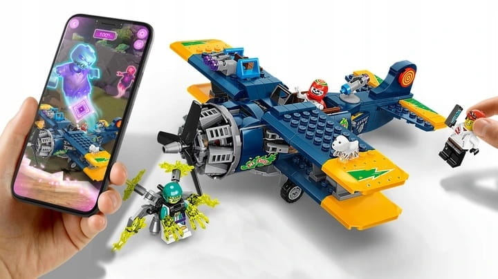 - Co jest w pudełku? Zestaw LEGO® z technologią AR zawiera zabawkowy samolot kaskaderski Hidden Side, który staje się interaktywny w cyfrowym świecie. Są tam także minifigurki Jacka, Mary Breaksom i szkieletowego El Fuego oraz figurka psa Spencera.