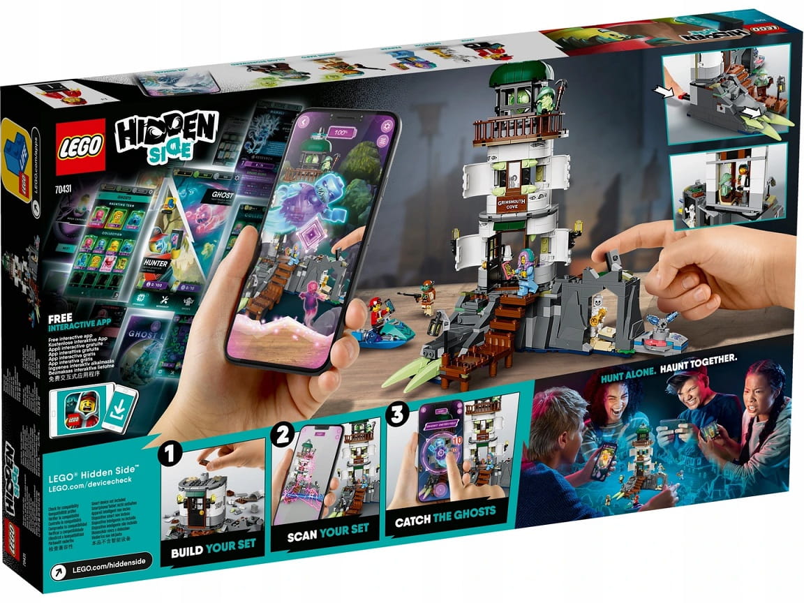 Witaj w świecie LEGO® Hidden Side, gdzie rzeczywistość cyfrowa i materialna przenikają się, tworząc rzeczywistość rozszerzoną i pozwalając na zabawę w trybie dla jednego lub wielu graczy. Zestaw 70431 Latarnia ciemności pozwala połączyć kreatywną zabawę klockami LEGO z aplikacją do rzeczywistości rozszerzonej, więc interakcja z fizycznym modelem znajduje odbicie w cyfrowym świecie. Odjazdowa interaktywna zabawka konstrukcyjna dla dzieci Aby zobaczyć niezwykły cyfrowy świat, trzeba tylko zeskanować model latarni urządzeniem z darmową aplikacją Hidden Side AR. Dzieci mogą w nim odkrywać, polować na duchy, rozwiązywać zagadki i zmierzyć się z najpotężniejszym duchem, Joe’em Ishmaelem. W zestawie jest też pięć minifigurek, więc dzieci mogą bawić się w tradycyjny sposób i wcielać się w różne role. Cyfrowa zabawa, która nieustannie ewoluuje Świat LEGO Hidden Side mieści się w fikcyjnym miasteczku Newbury, którego budynki i mieszkańców opanowały duchy. Aplikacja do rzeczywistości rozszerzonej jest stale wzbogacana o coraz to nową zawartość, duchy i wyjątkowe wydarzenia.