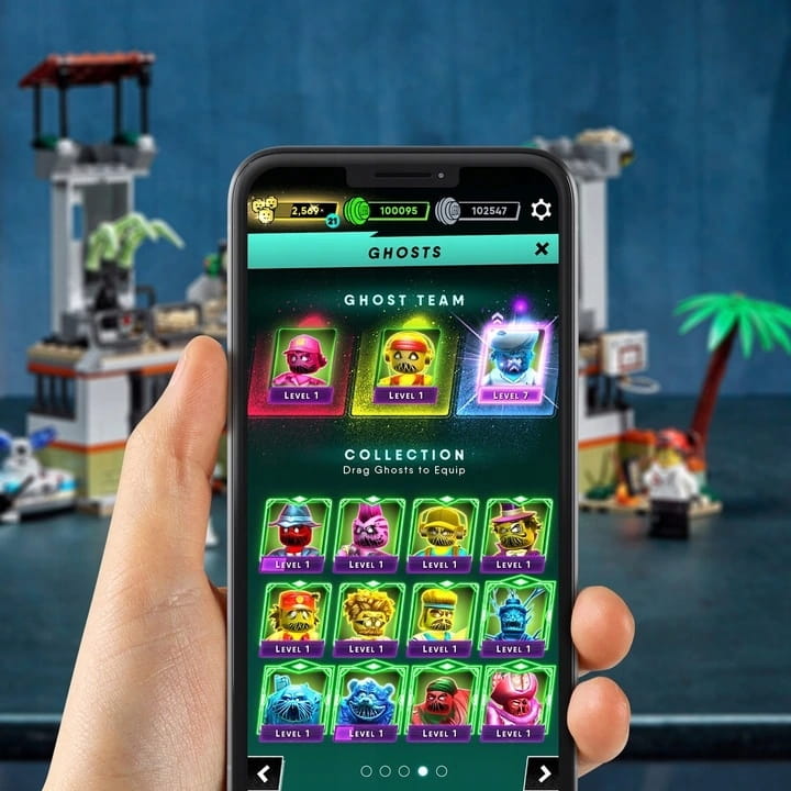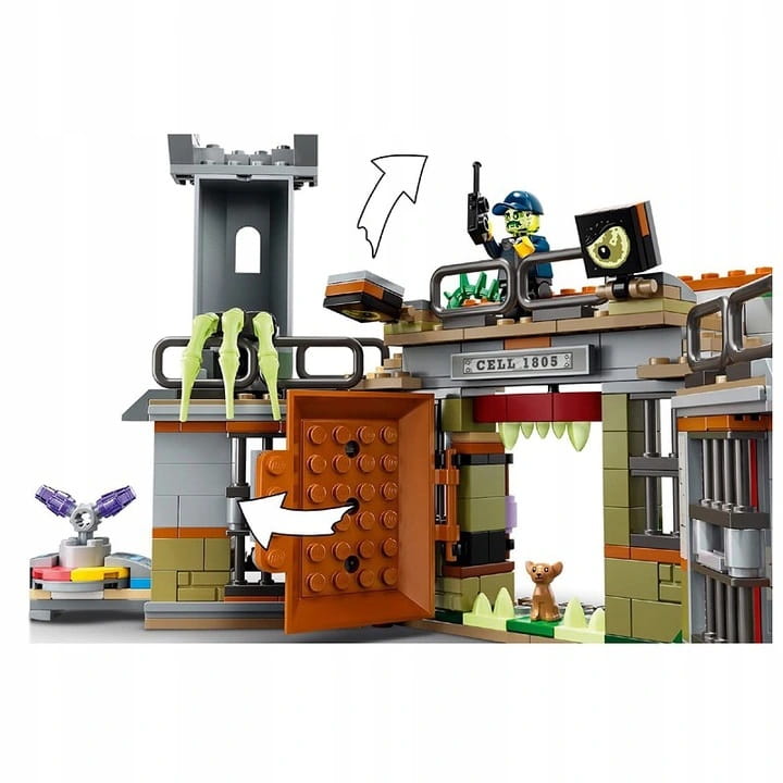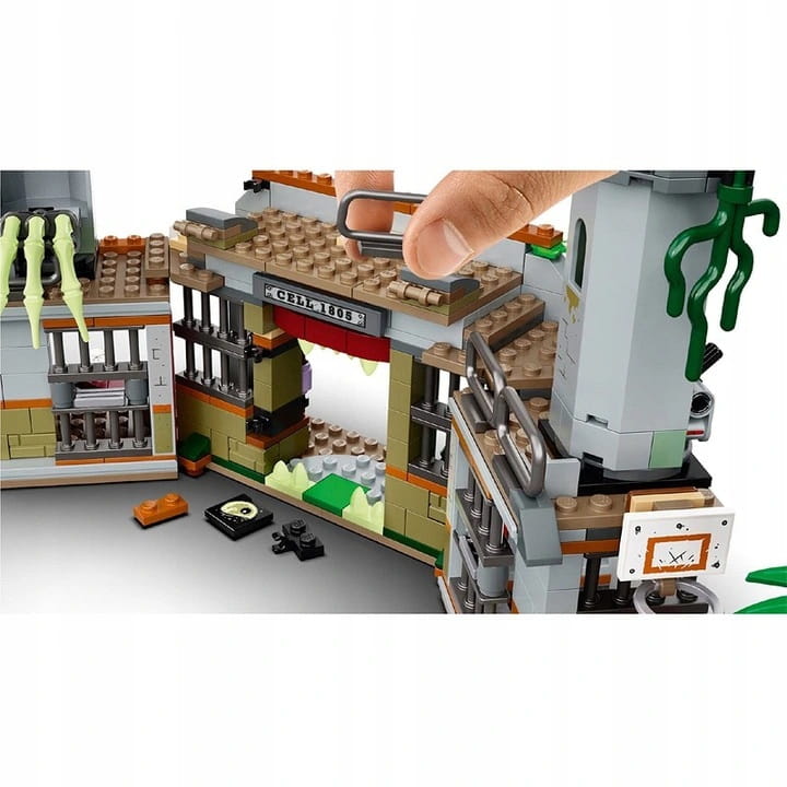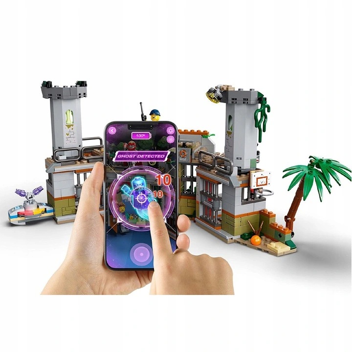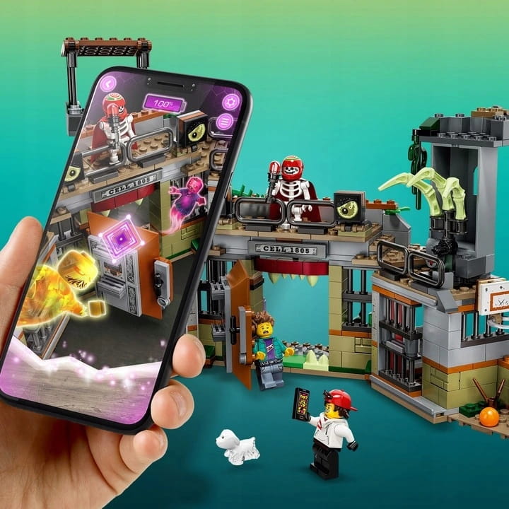 - Zestaw z rzeczywistością rozszerzoną zawiera model więzienia Hidden Side, który ma funkcję zmiany w nawiedzony budynek i staje się interaktywny w aplikacji. Do tego w pudełku dzieci znajdą minifigurki Jacka, Ramiego, El Fuego i Nate'a Lockema oraz figurki psów Spencera i Maximusa.