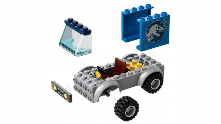 • Furgonetka ma podwozie ułatwiające budowanie, otwierany schowek z tyłu i miejsce na skrzynię. W zestawie jest także tyranozaur z otwieraną paszczą do zbudowania.