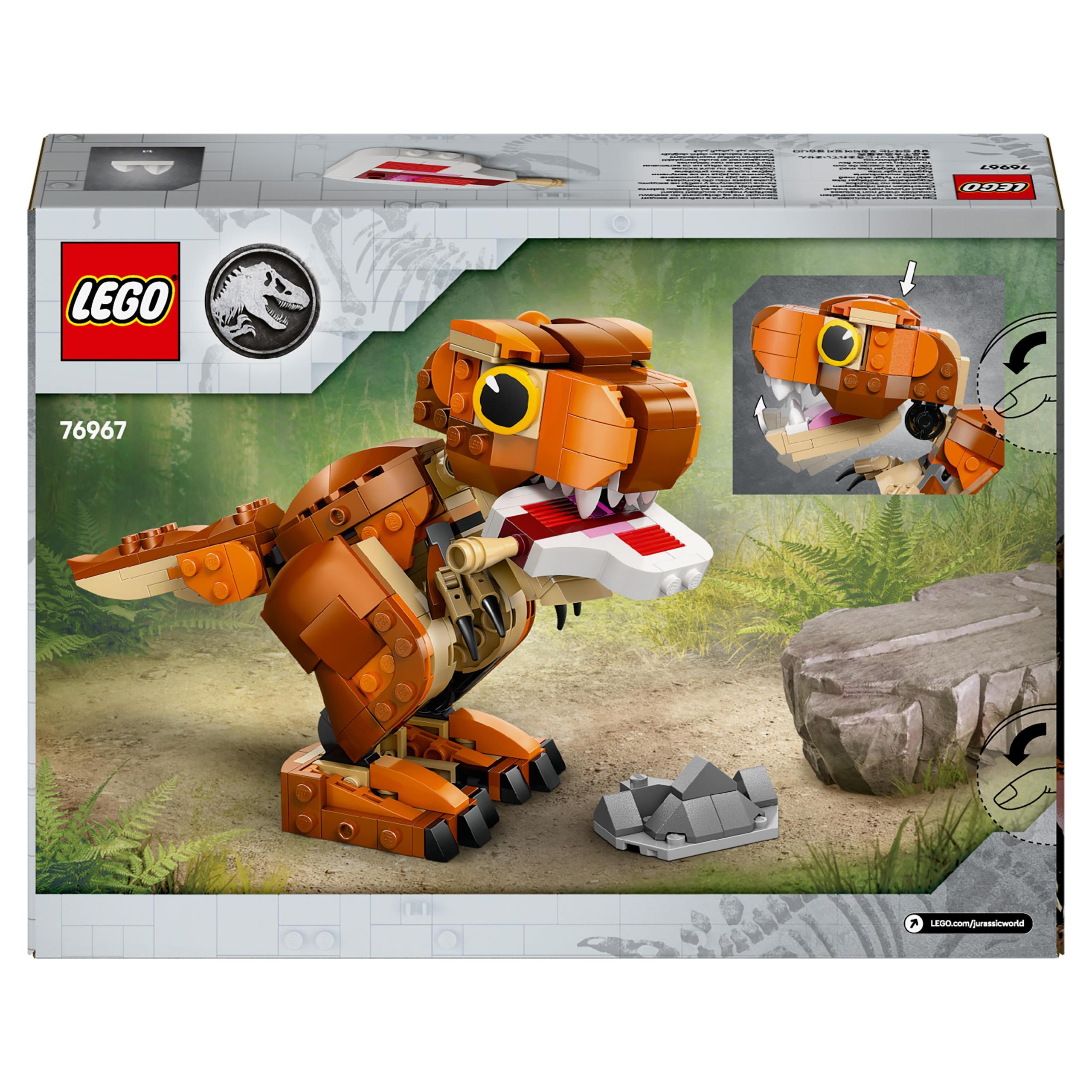 Dzięki zestawowi LEGO® Jurassic World Tyranozaur Mały (76967) na małych miłośników dinozaurów w wieku od siedmiu lat czekają ekscytujące przygody i zabawa w opiekę nad małym tyranozaurem.