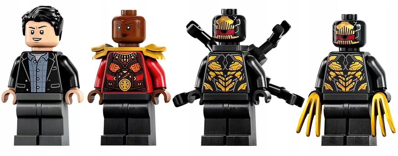 - Kultowi bohaterowie – w zestawie jest Hulkbuster do zbudowania i cztery minifigurki: Bruce Banner, którego głowa obraca się i odsłania zieloną twarz, Okoye z włócznią i dwóch pomocników