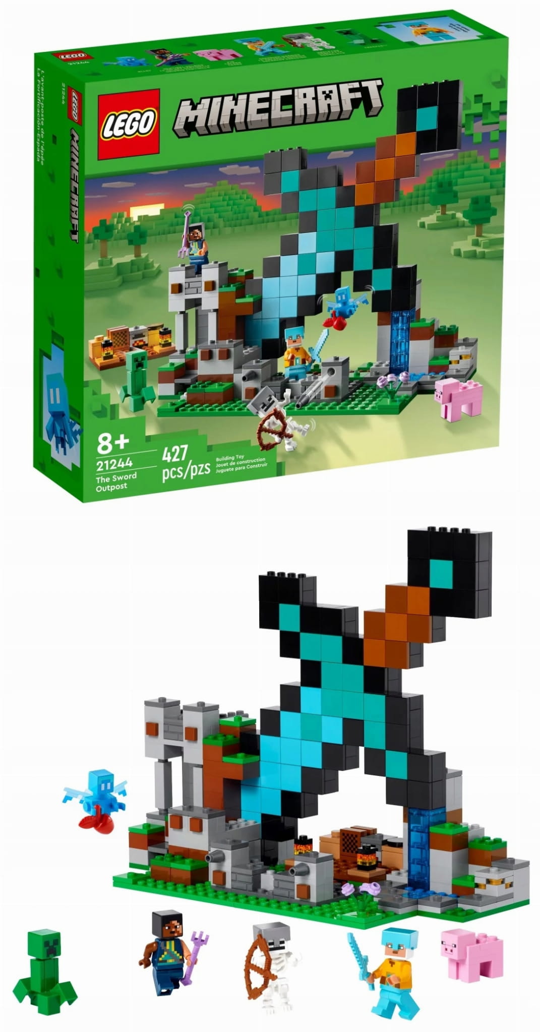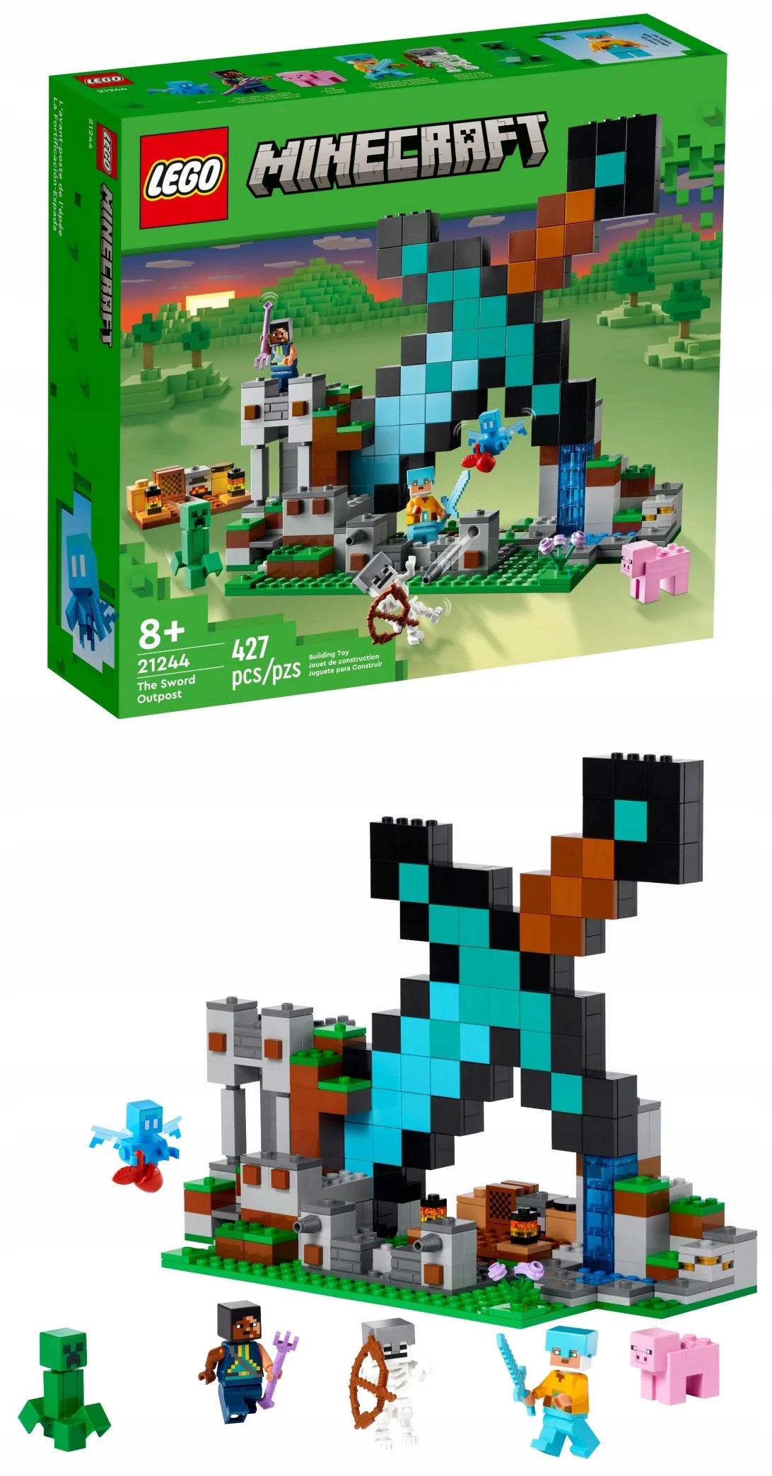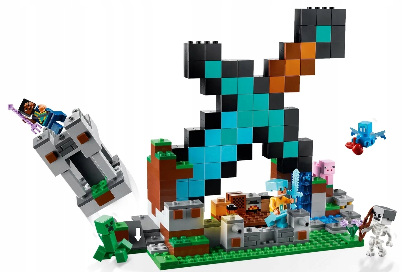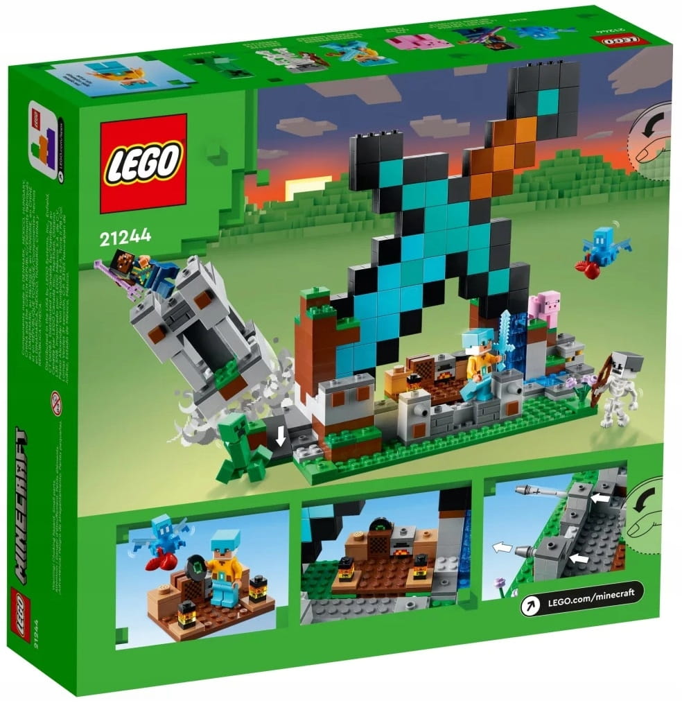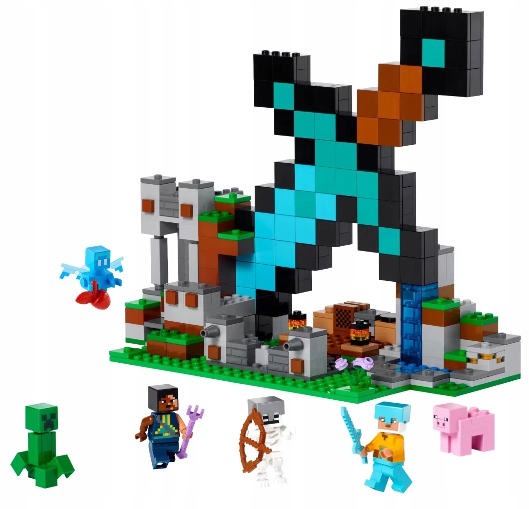 - Zestaw z diamentowym mieczem – zestaw LEGO® Minecraft® Bastion miecza (21244) inspiruje do odgrywania przygód w powiększonej wersji cennej broni z gry