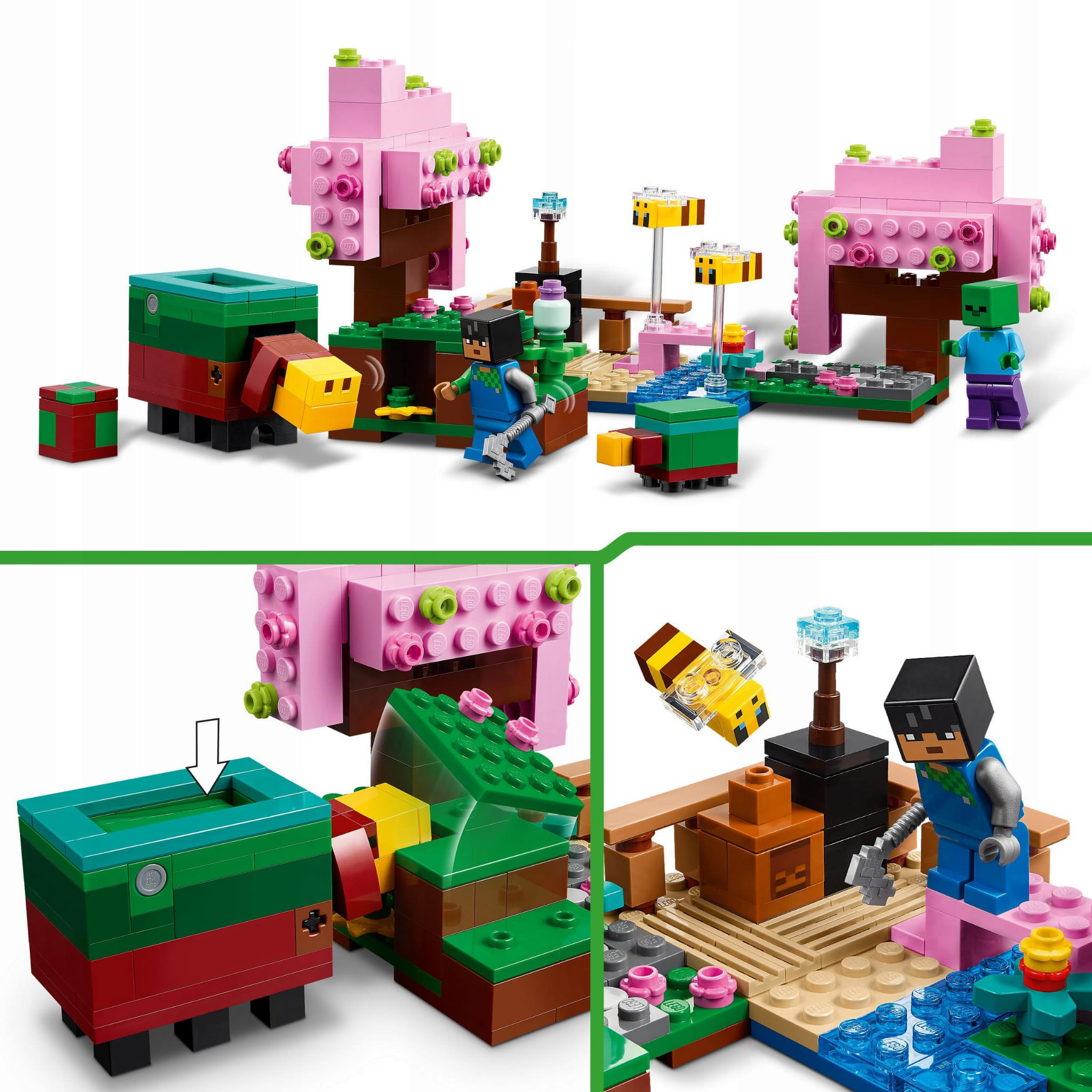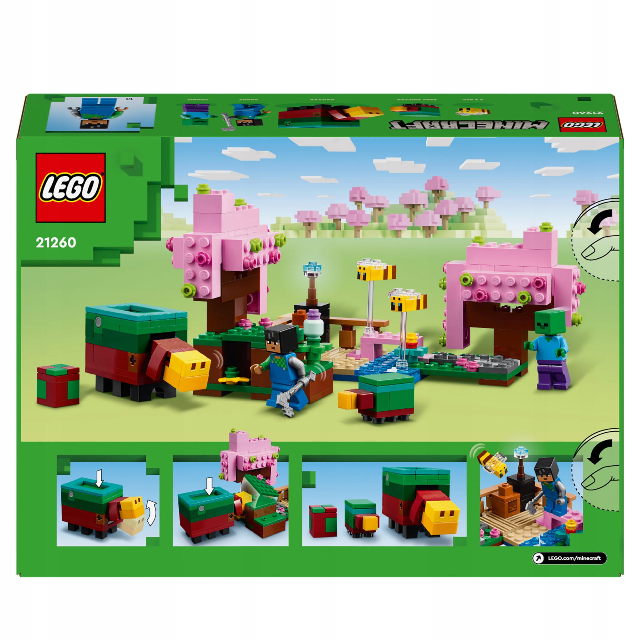 LEGO® Minecraft® Wiśniowy ogród (21260) to praktyczna zabawka z gry i pierwszy zestaw LEGO® z figurkami i elementami z biomu wiśniowego ogrodu Minecraft®.