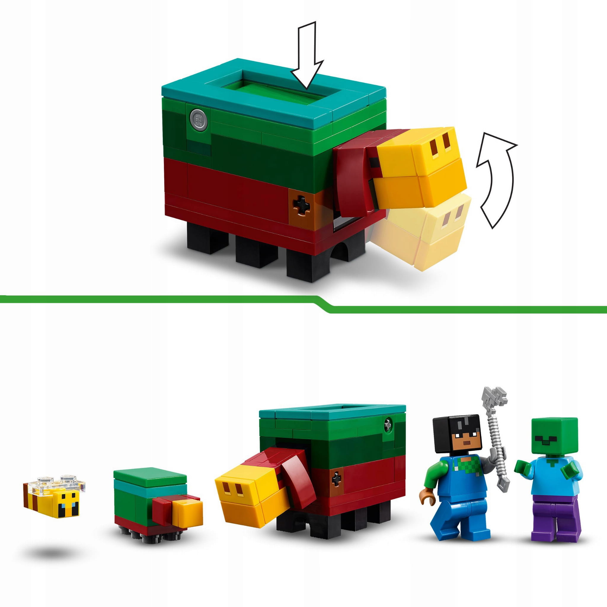 - Więcej możliwości zabawy — sprawdź całą serię zestawów LEGO® Minecraft® (sprzedawanych osobno), aby zabawa była jeszcze ciekawsza