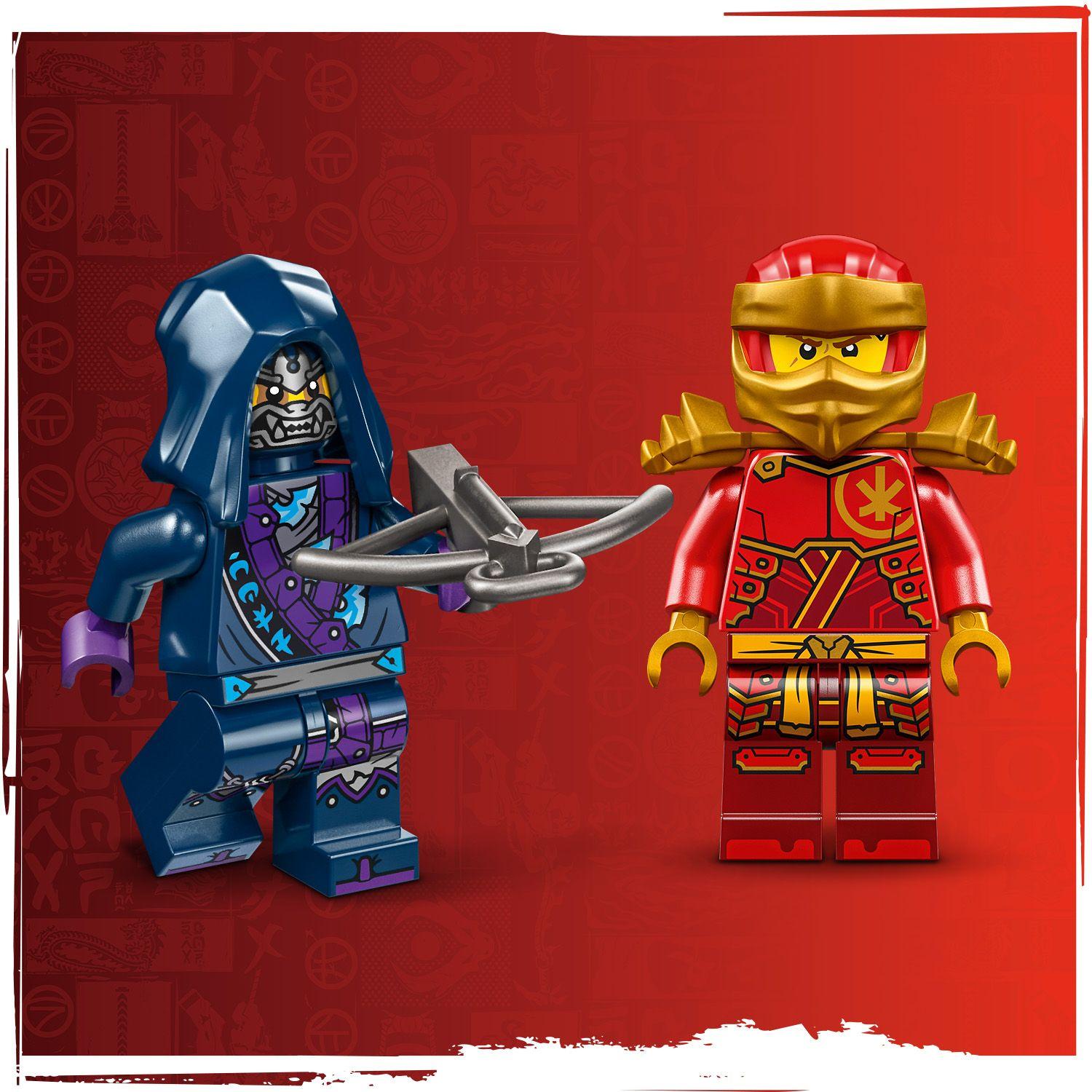 - Dwie postacie LEGO® NINJAGO® — ten zestaw ninja zawiera minifigurkę Kaia uzbrojonego w katanę oraz złego strażnika wilczej maski z kuszą