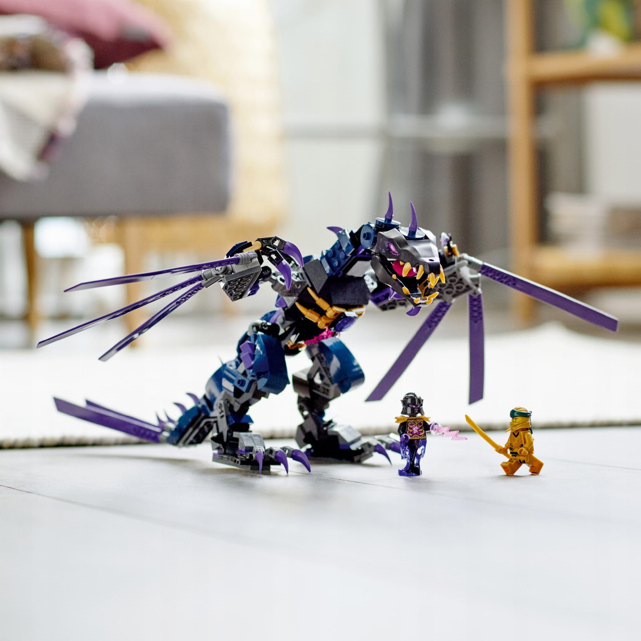 Oprócz ruchomego smoka w zestawie są 2 minifigurki: Złoty Lloyd z kataną na plecach oraz Overlord z ostrym mieczem.