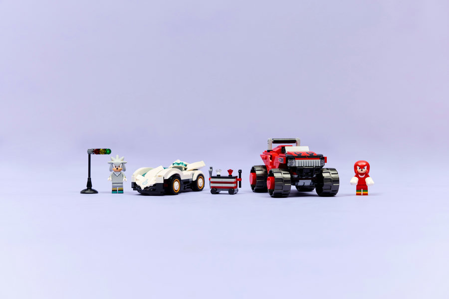 - Silver the Hedgehog, Knuckles i nie tylko — zestaw konstrukcyjny zawiera pierwszą w historii minifigurkę LEGO® Silvera, minifigurkę Knucklesa, skrzynkę z narzędziami, narzędzia, światła startowe oraz czerwony i biały Szmaragd Chaosu
