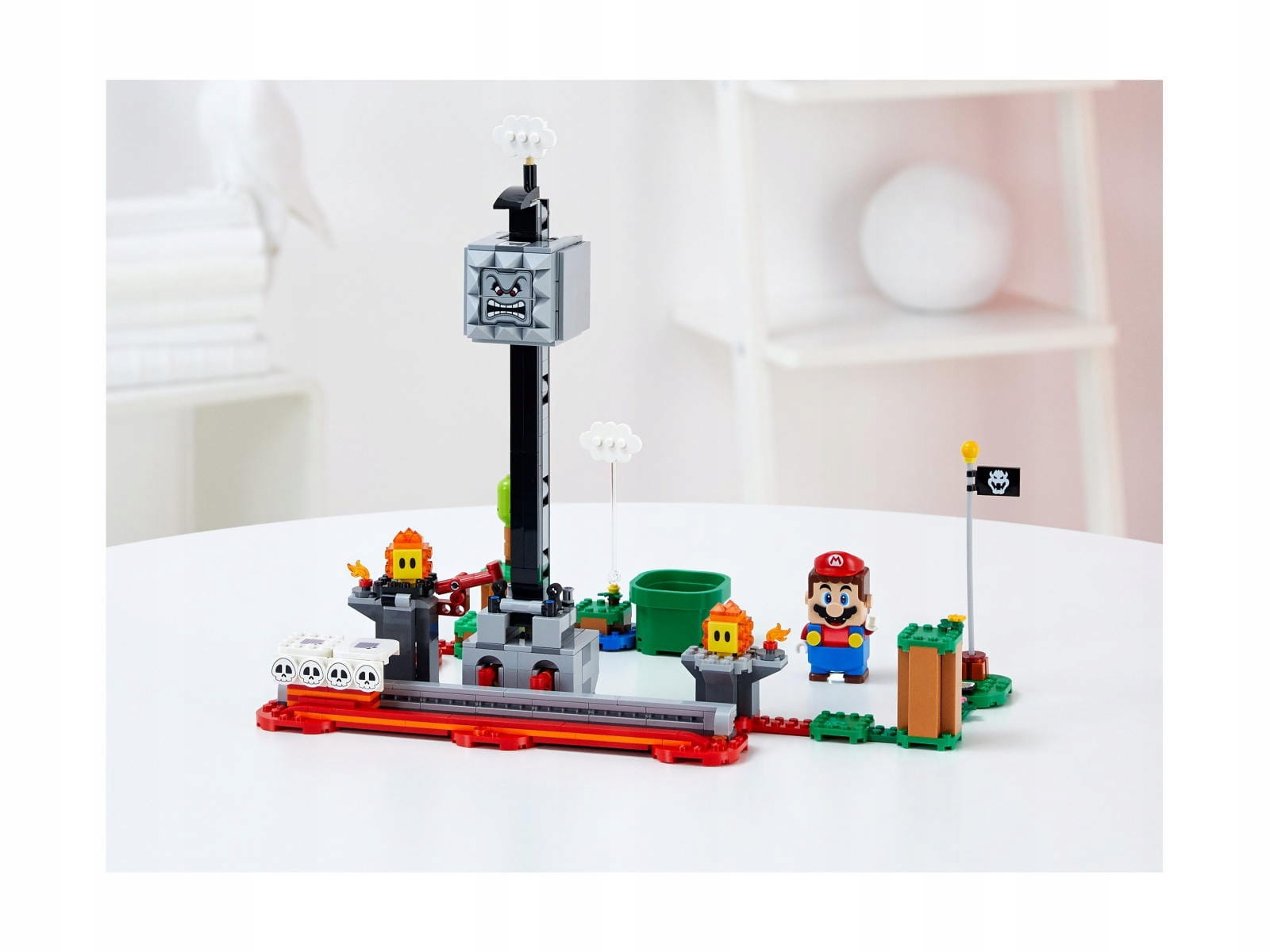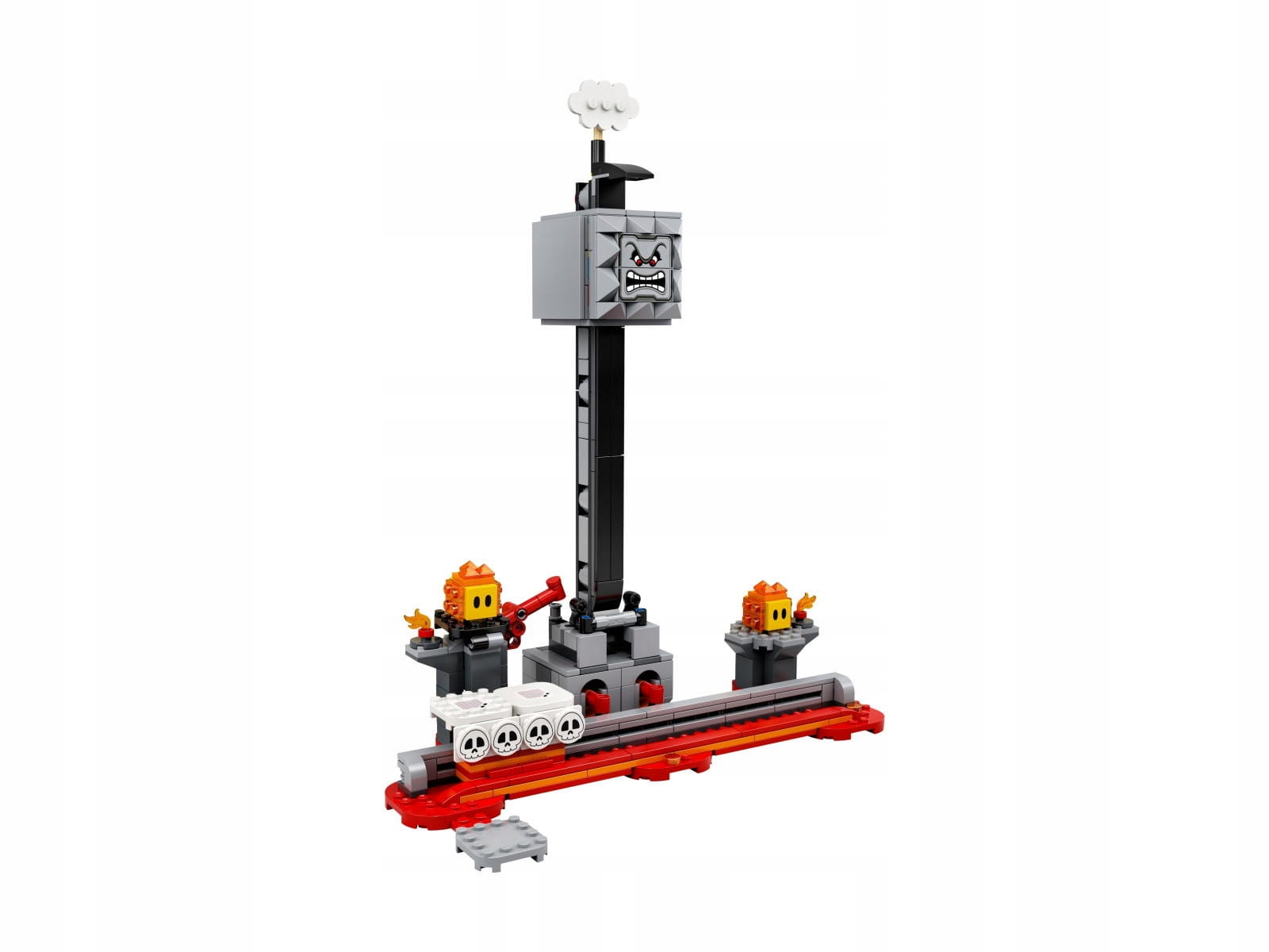 Zawiera platformę zjazdową dla LEGO® Mario™ (figurka nie jest częścią zestawu) z dwiema powierzchniami o różnym stopniu trudności utrzymania równowagi, a także Thwompa i dwie figurki Lava Bubble z funkcją przewracania.