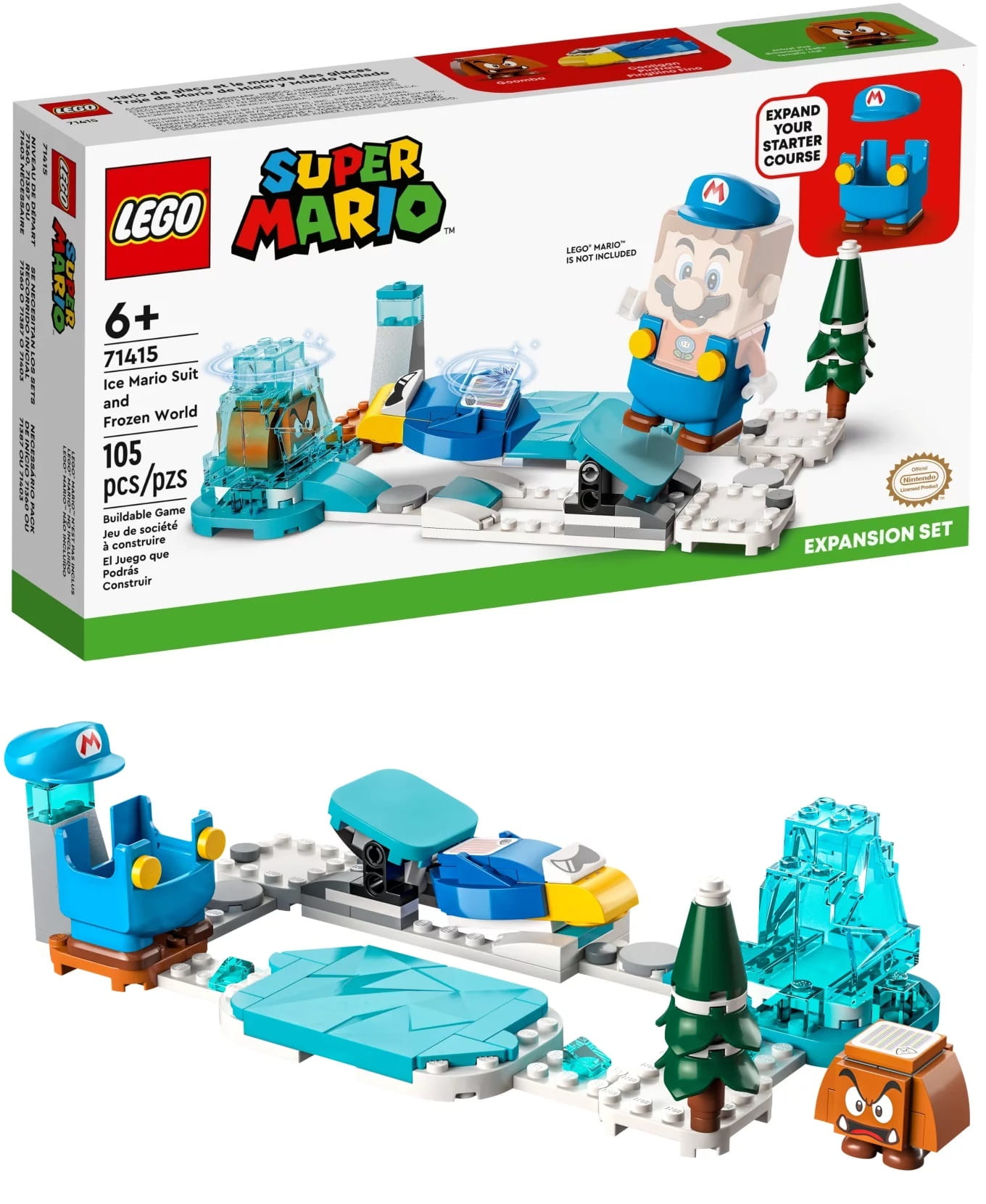Zawiera on lodowy strój Mario dla LEGO® Mario™ (figurka nie jest dołączona) oraz figurki Cooligana i Goomby. Lodowa płytka do zbudowania imituje dźwięki jazdy na łyżwach, gdy LEGO Mario po niej jeździ. Jest tu także wyrzutnia, z której można wystrzelić Cooligana w stronę bloku lodu.