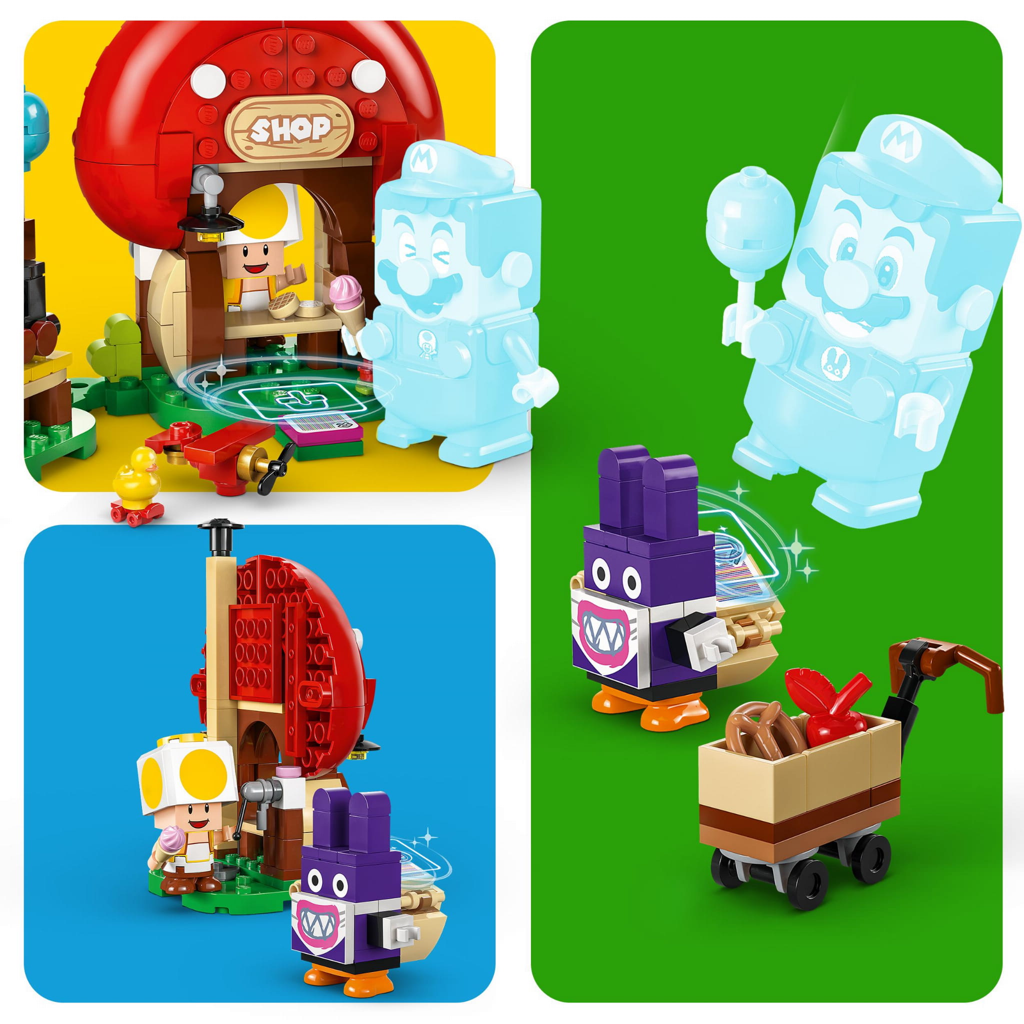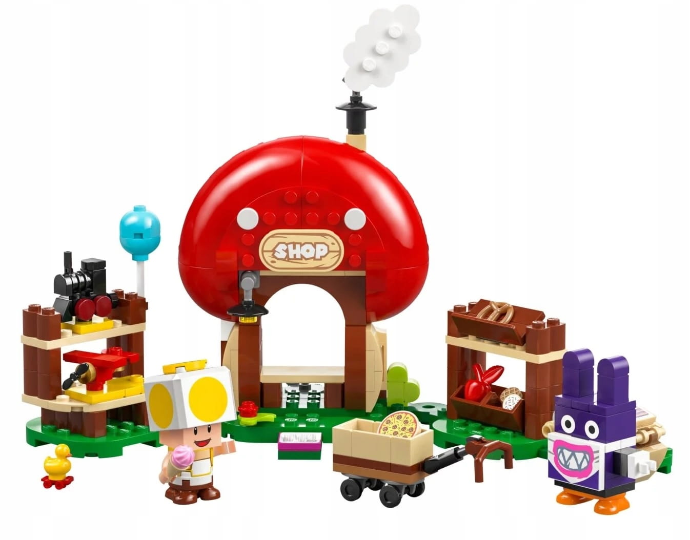 - Zestaw z Żółtym Toadem i Nabbitem — baw się w wizytę w sklepie Toada dzięki temu zestawowi rozszerzającemu LEGO® Super Mario™ ze sklepem do zbudowania i wieloma akcesoriami
