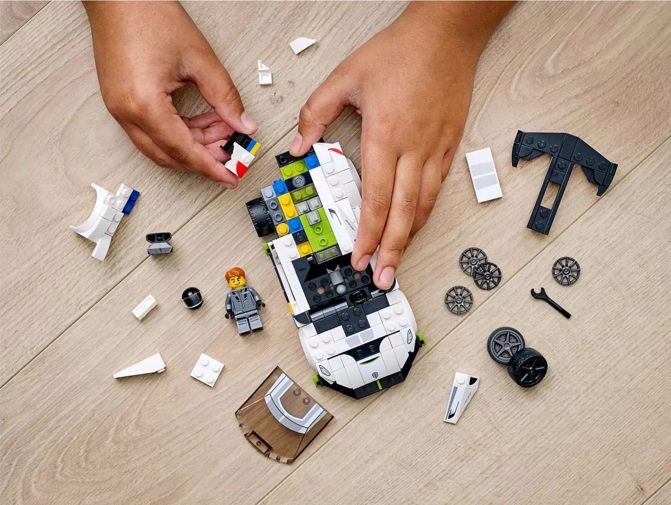 Ten kolekcjonerski model ma szerokie podwozie, dzięki czemu wewnątrz pojazdu jest miejsce na dwa fotele i jeszcze więcej detali. Ponadto zestaw zawiera minifigurkę ubranego w kombinezon i kask kierowcy z kluczem, więc możesz liczyć na mnóstwo możliwości kreatywnej zabawy.