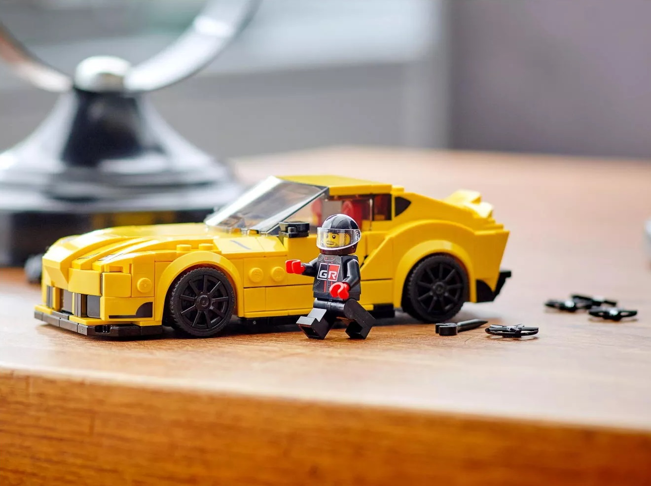 - Co jest w środku? Wszystkie elementy potrzebne do zbudowania kolekcjonerskiej repliki samochodu Toyota GR Supra oraz minifigurka kierowcy w kombinezonie wyścigowym Toyoty z kaskiem i kluczem.