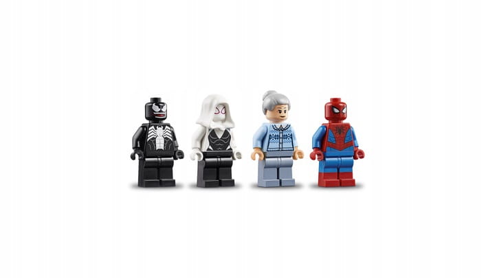 W zestawie cztery minifigurki: Spider-Man, Ghost Spider, Venom oraz ciocia May. Pajęczy mech ma otwierany kokpit z miejscem dla minifigurki, ruchome kończyny, miotacz pajączków i pajęczyn oraz chwytak z miejscem, do którego można doczepić różne rodzaje pajęczyny. Mech Venoma ma kokpit z miejscem na minifigurkę, ruchome kończyny, długi język i chwytliwe szpony, w które można łapać minifigurki.