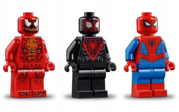 - W zestawie trzy minifigurki (nowości na grudzień 2018 r.): Spider-Man, Miles Morales i Carnage.