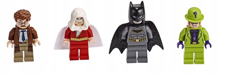 - W zestawie cztery minifigurki LEGO® (nowości na czerwiec 2019 r.): Batman™, komisarz Gordon™, SHAZAM!™ i Człowiek-Zagadka™.