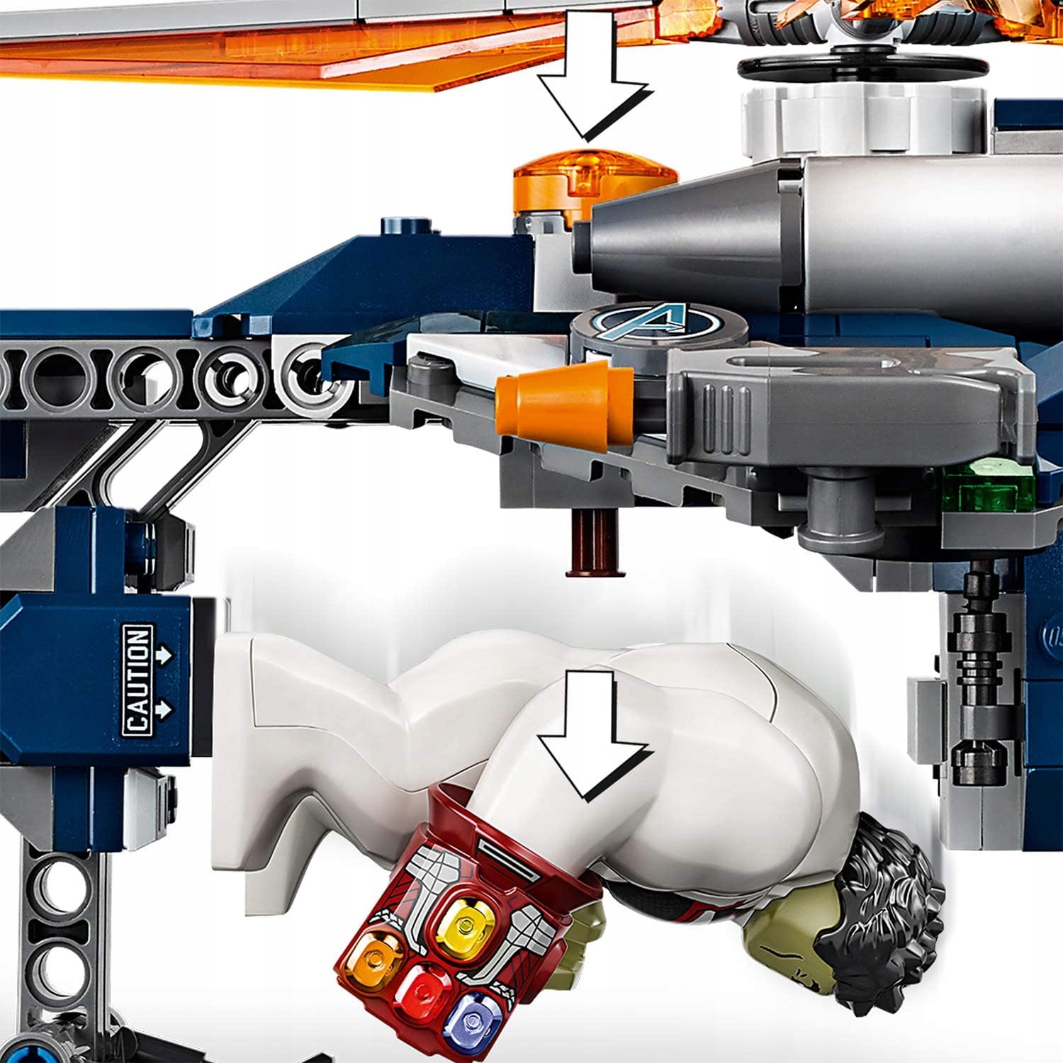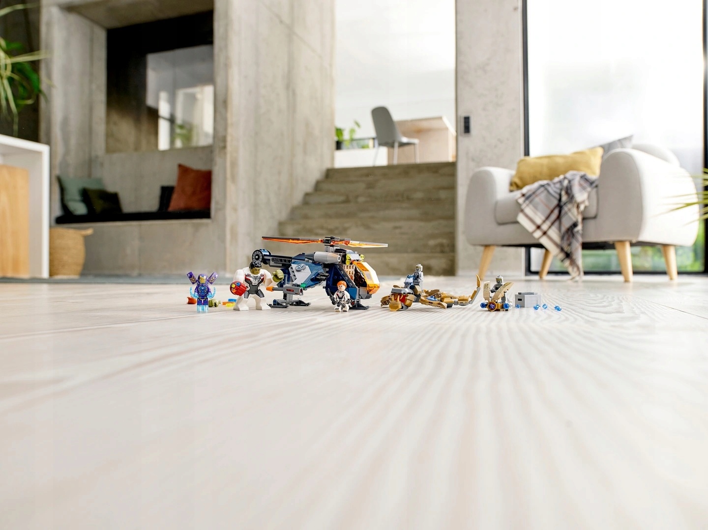 Podczas zabawy fascynującym zestawem LEGO® 76144 Helikopterowa misja ratunkowa Hulka Twój mały superbohater poczuje się jak postać z filmu Marvel „Avengers: Koniec gry”. Helikopterem Avengersów, wyposażonym w dwa potrójne miotacze klocków i odlotową funkcję umożliwiającą zrzucenie Hulka na wrogów, można bawić się na nieskończenie wiele sposobów. Do tego w bitwach powietrznych udział wezmą też lewiatan i miotający klocki latający pojazd Chitauri.