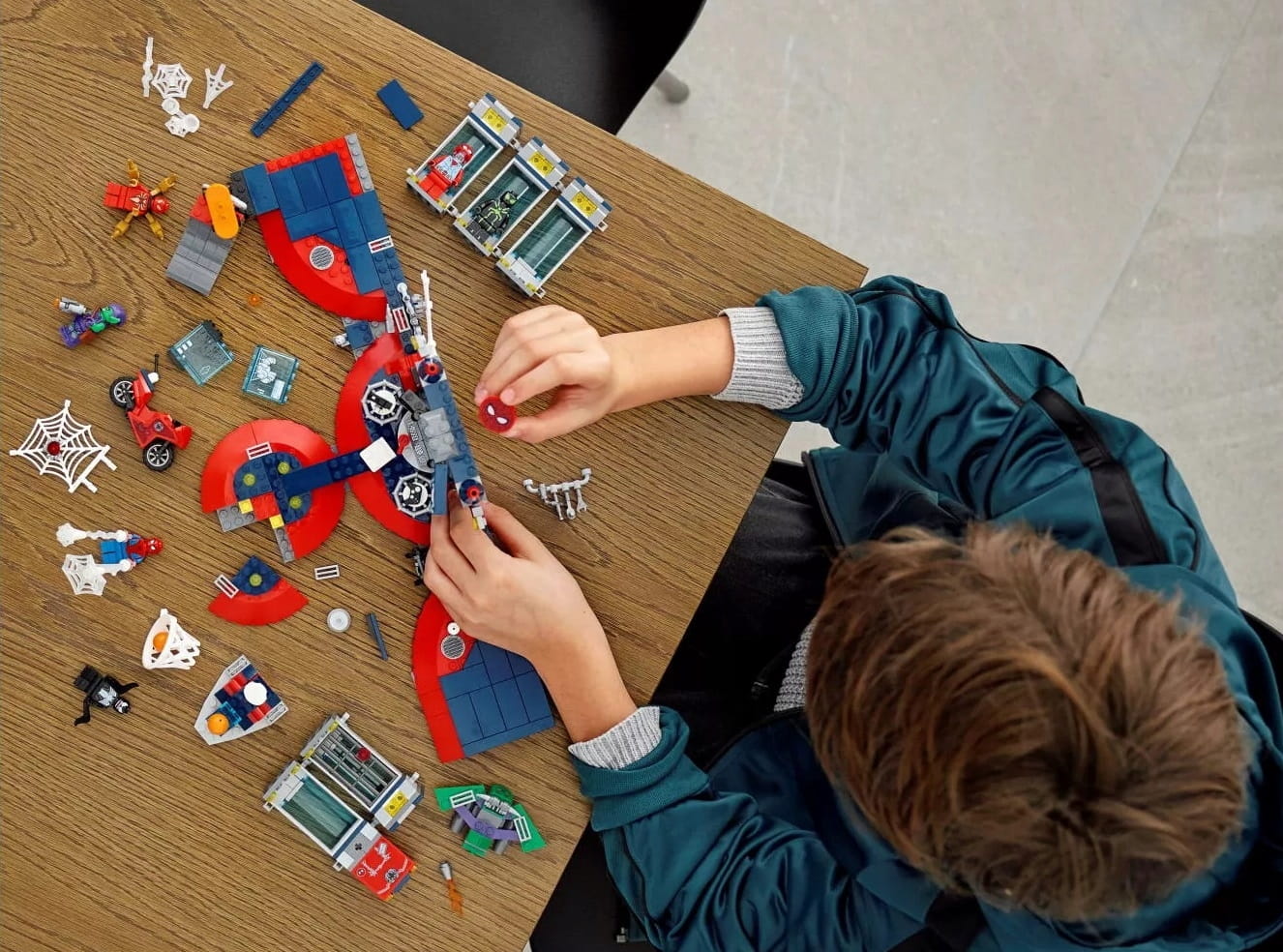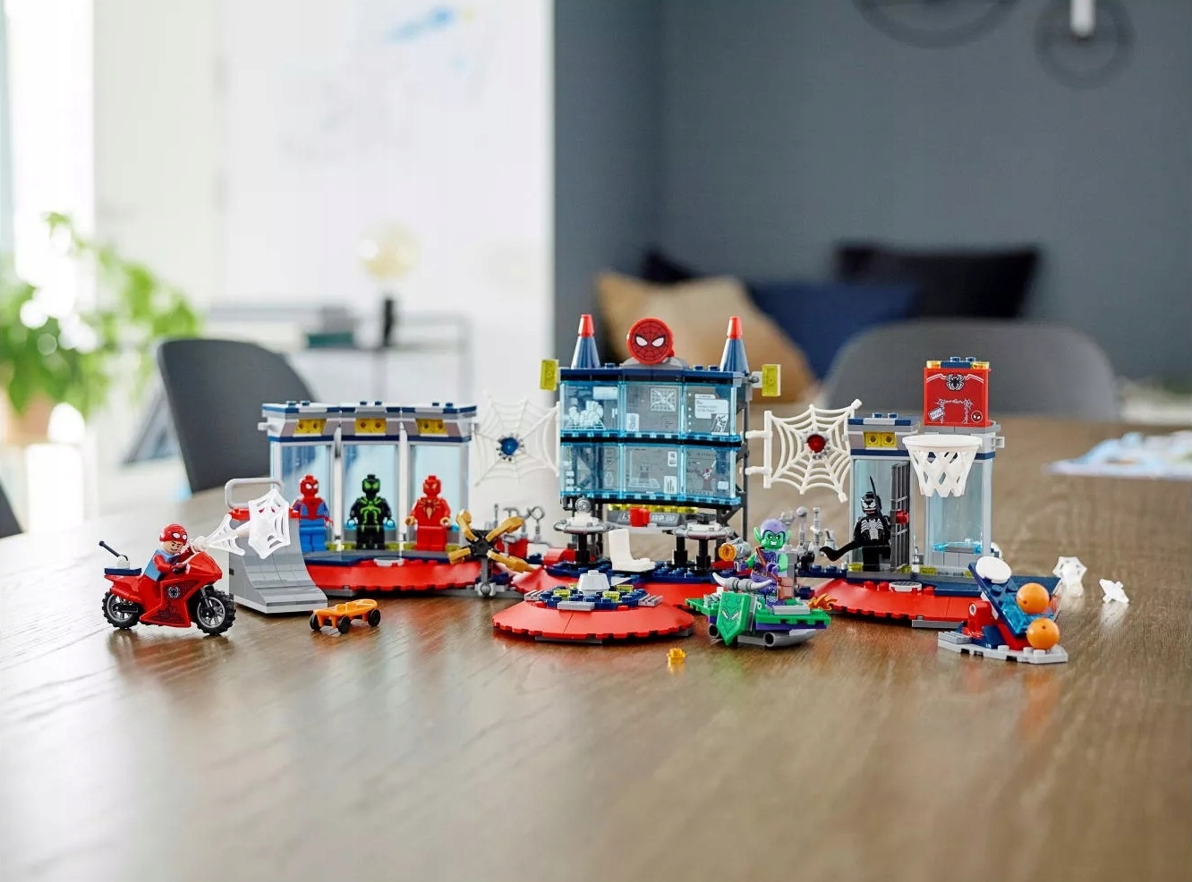 - W komplecie minifigurki Spider-Mana, Zielonego Goblina i Venoma, a także komputer, PlayStation, kosz do koszykówki, rampa z deskorolką, kącik z napojami, aparat, sprzęt treningowy, motocykl, zbroja Żelaznego Pająka, broń i więzienie.