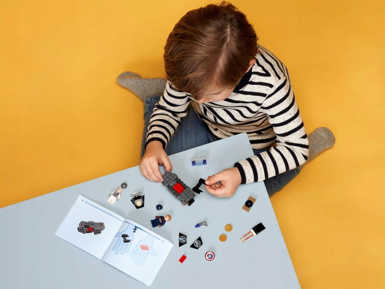 - Duży klocek startowy i proste kroki budowania sprawiają, że nawet czterolatki mogą już bez problemów zbudować motocykl Kapitana Ameryki z dużymi kołami.