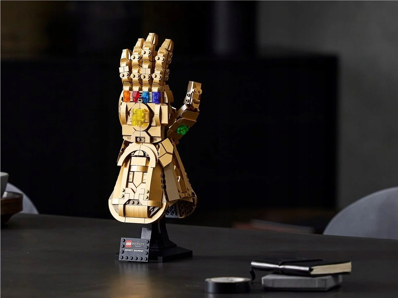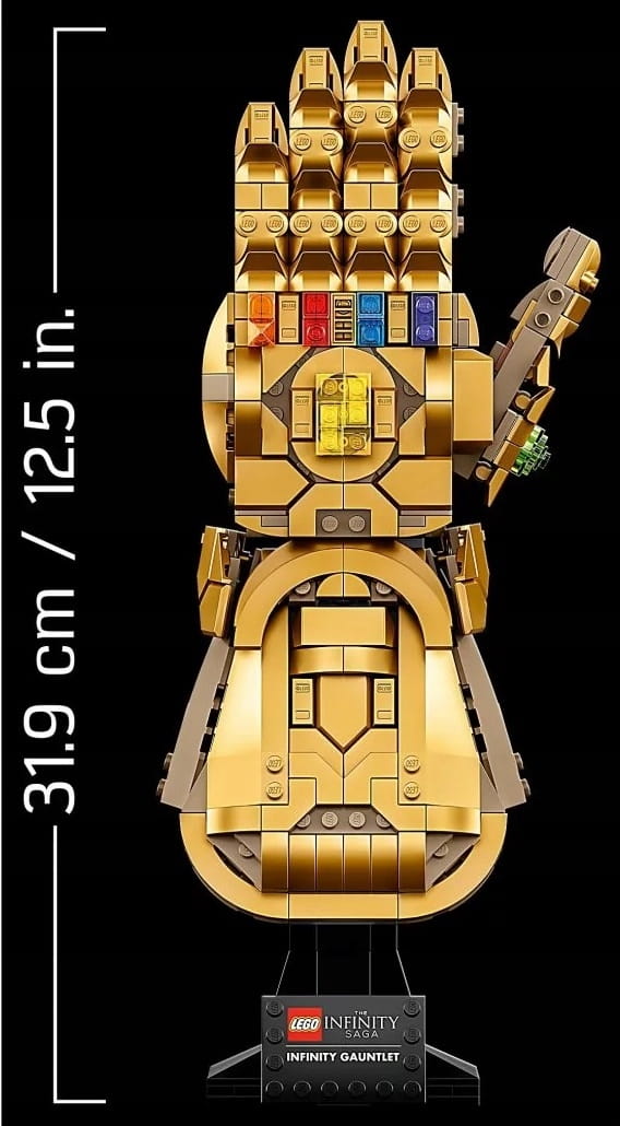 Model LEGO kultowej Rękawicy Nieskończoności znanej z filmów „Avengers: Wojna bez granic” oraz „Avengers: Koniec gry” wytwórni Marvel Studios z pewnością przyciągnie uwagę w każdym miejscu, w którym go postawisz. Ruchome palce, jaskrawe Kamienie Nieskończoności i tabliczka z opisem przyczepiona do solidnej podstawki zmieniają ten wciągający projekt konstrukcyjny w fantastyczne dzieło, które zachwyci każdego.