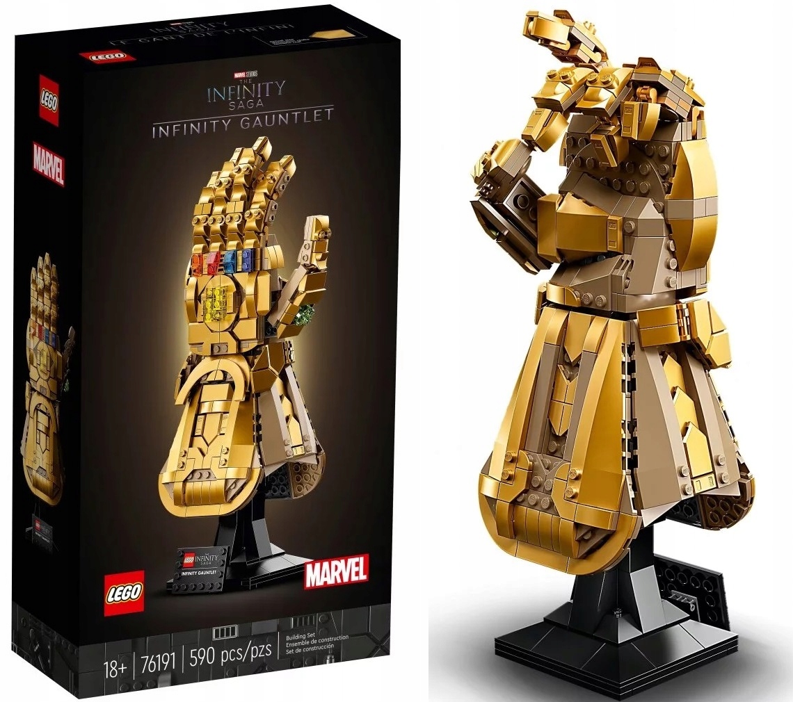 - Piękny zestaw do zbudowania i postawienia na półce LEGO® Marvel Rękawica Nieskończoności (76191) prezentuje fascynujący styl znany z filmów „Avengers: Wojna bez granic” oraz „Avengers: Koniec gry” wytwórni Marvel Studios.