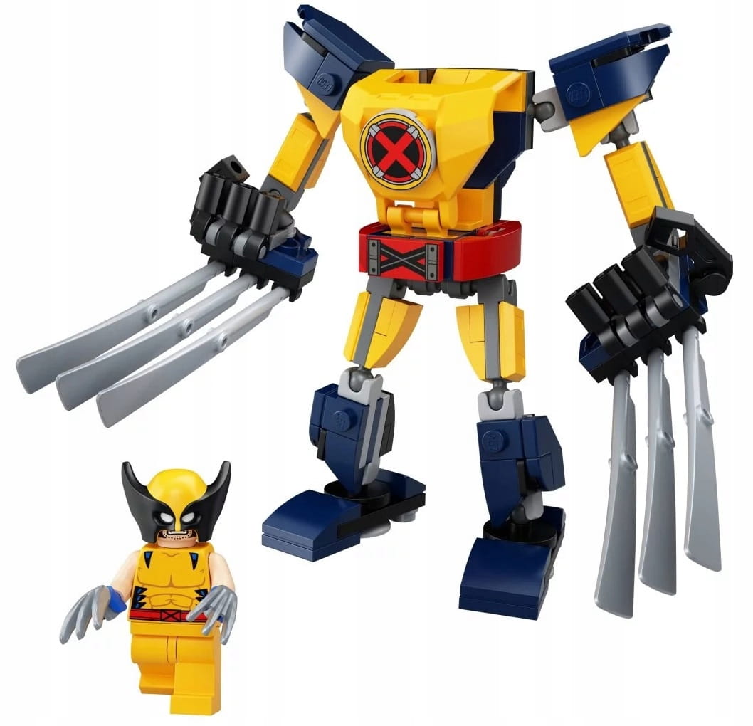 - Kultowa postać Marvela — w komplecie jest minifigurka Wolverine’a i złożona z klocków mechaniczna zbroja z dużymi ruchomymi pazurami na dłoniach