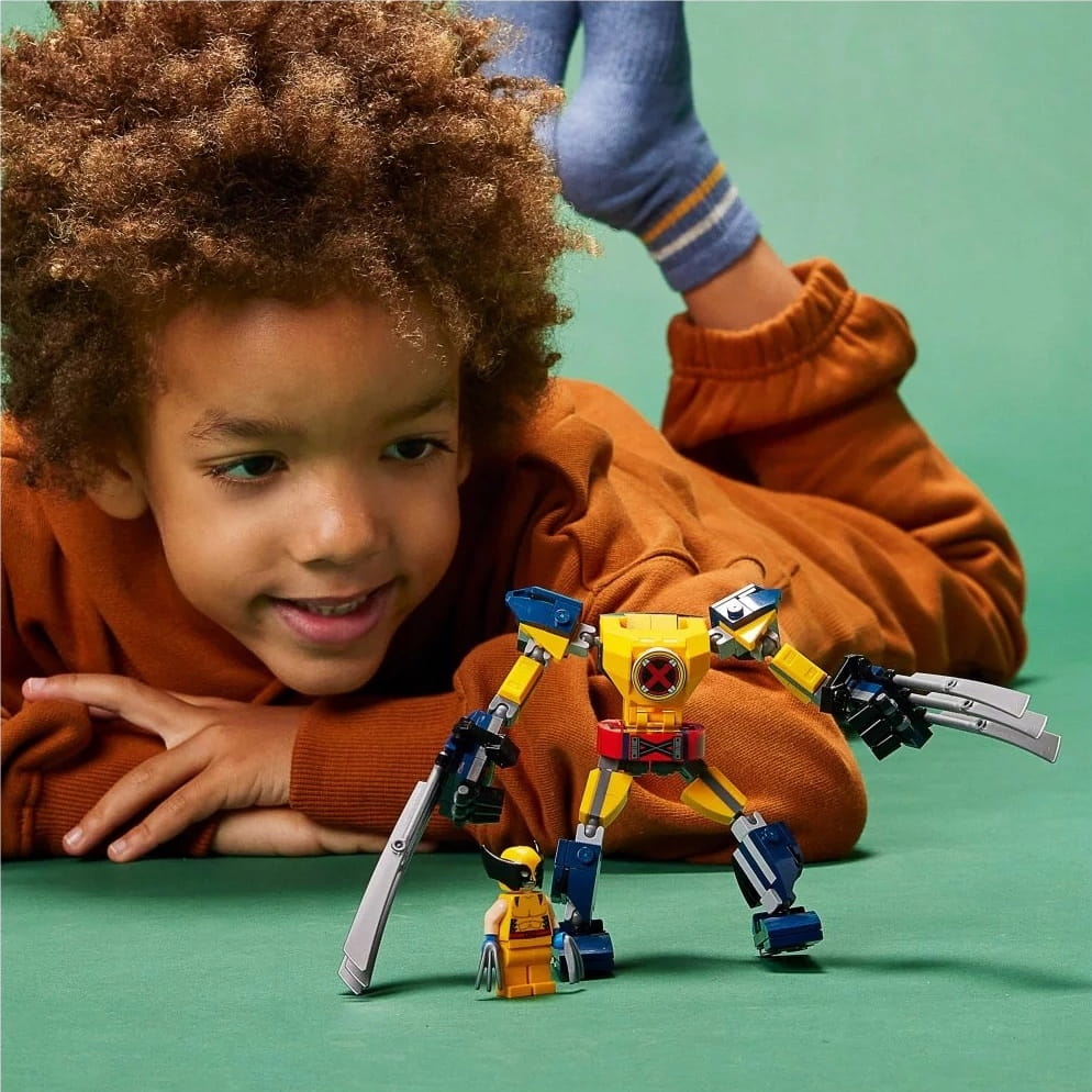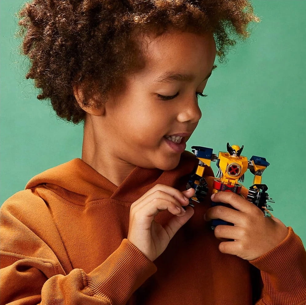 - Akcja na dużą skalę — mech i minifigurka Wolverine’a z zestawu LEGO® Marvel Mechaniczna zbroja Wolverine’a (76202) to gratka dla młodych superbohaterów