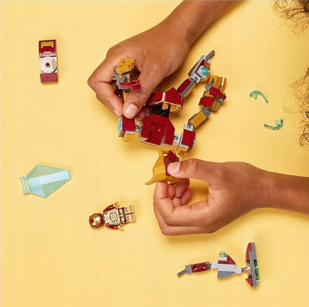- Pomysłowa zabawka i atrakcyjna ozdoba — dzieci mogą umieścić minifigurkę Iron Mana w otwieranym kokpicie mecha, a potem odgrywać ruchomą zabawką niezliczone bitwy i przygody w stylu superbohaterów