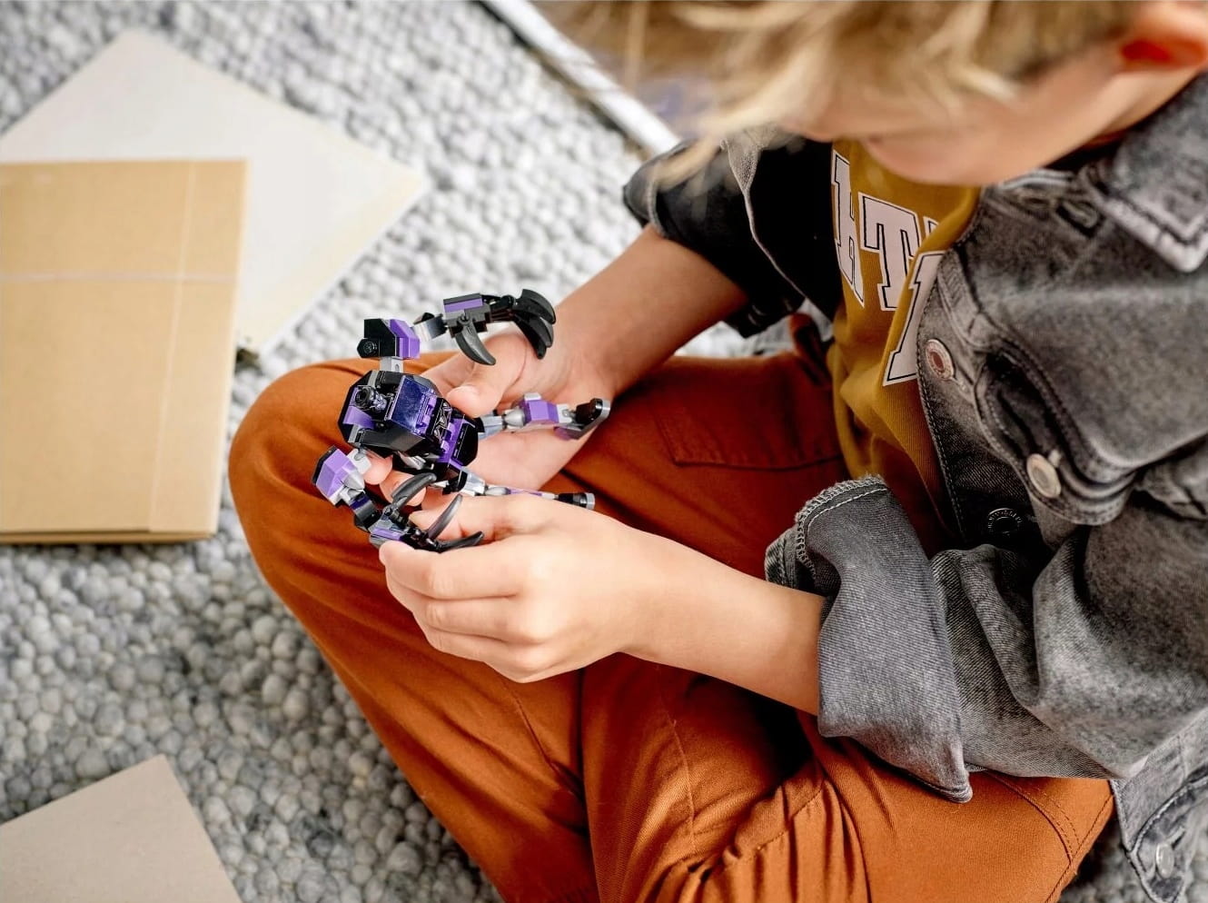 - Niezliczone sposoby twórczej zabawy — dzieci mogą umieścić minifigurkę Czarnej Pantery w otwieranym kokpicie mecha, a potem odgrywać ruchomą zabawką niezliczone przygody w stylu superbohaterów walczących ze złoczyńcami