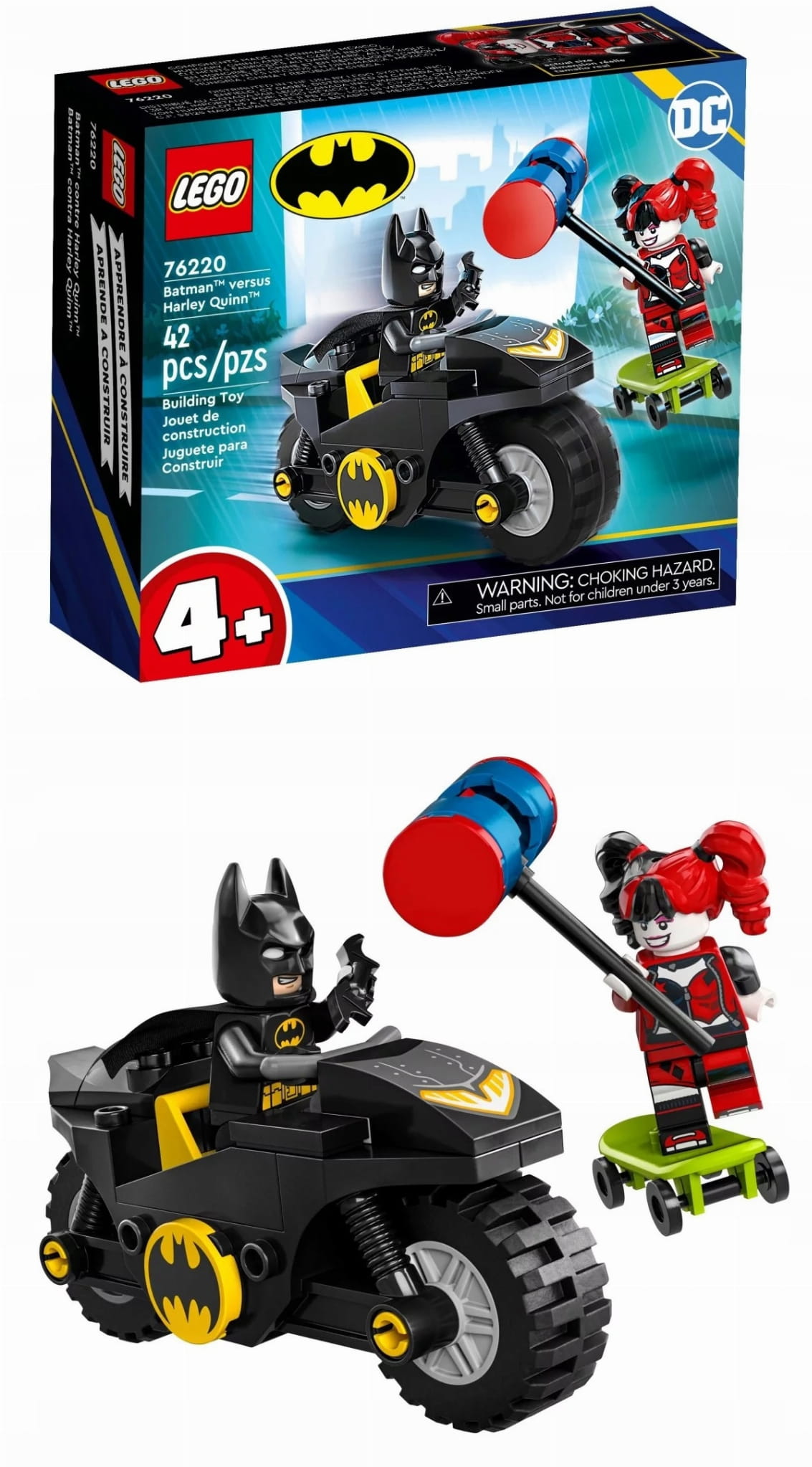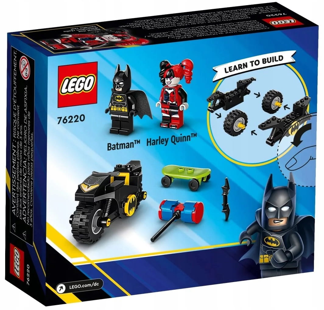 Zestaw LEGO® DC Batman™ kontra Harley Quinn™ (76220) zawiera klasyczne postacie, świetne pojazdy i niesamowite akcesoria, które zachęcą dzieci w wieku od 4 lat do wspólnej zabawy wspierającej rozwój.