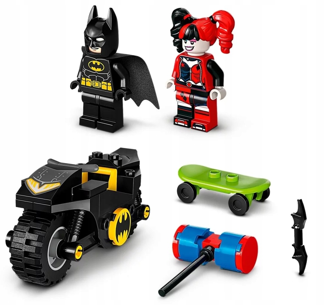 Zestaw z pojazdami obejmuje dwie popularne postacie z filmów z uniwersum DC: Batmana na Batmotorze™ oraz Harley Quinn z młotem na deskorolce. Zestawy LEGO dla dzieci w wieku od 4 lat są pełne ciekawych detali, które zapewniają angażującą zabawę. Każdy woreczek w pudełku zawiera kompletny model i postać, które dzieci mogą od razu złożyć.