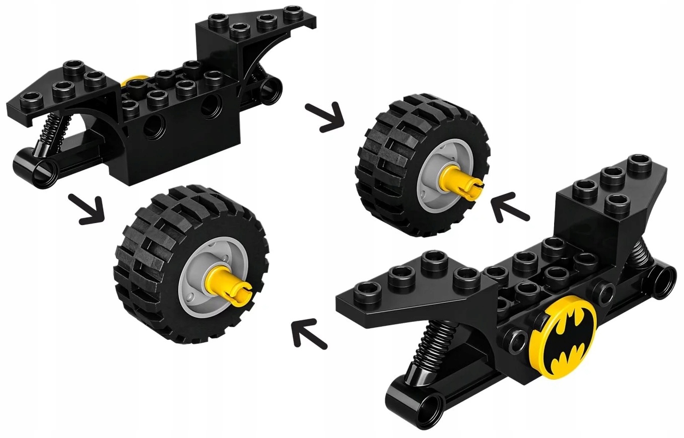 - Kultowe postacie – zestaw obejmuje Batmana™ na Batmotorze™ i z Batarangiem™, a także Harley Quinn™ z deskorolką, młotem i dynamitem. Klocek startowy przyspiesza budowanie, by dzieci mogły się bawić