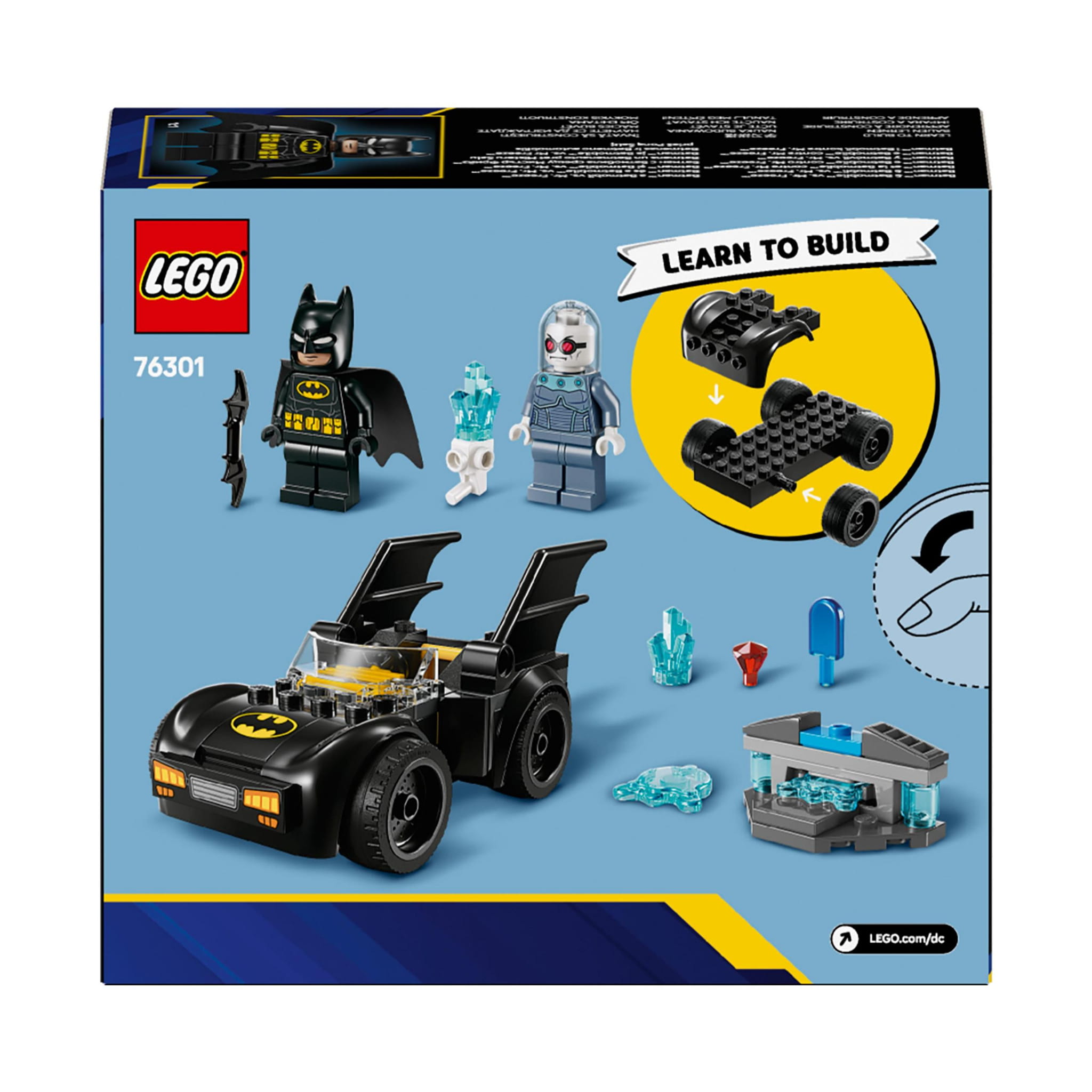 Zestaw zawiera minifigurki Mr. Freeze’a i Batmana, a także Batmobil do zbudowania, w którym jest miejsce na minifigurkę Batmana.
