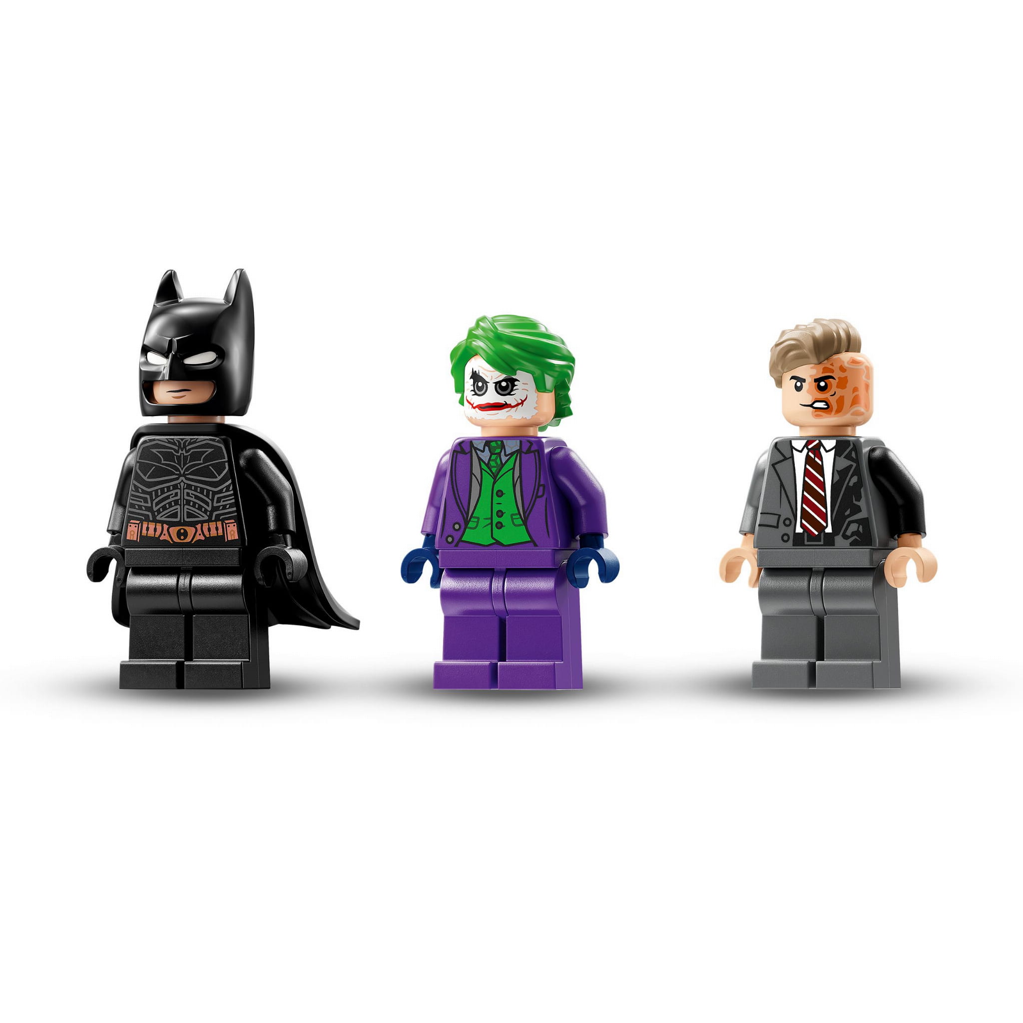 Ten zestaw LEGO Batman zawiera trzy minifigurki znanych postaci: Batmana uzbrojonego w Batarang™, Jokera trzymającego plik banknotów i Dwóch Twarzy z charakterystyczną srebrną monetą.