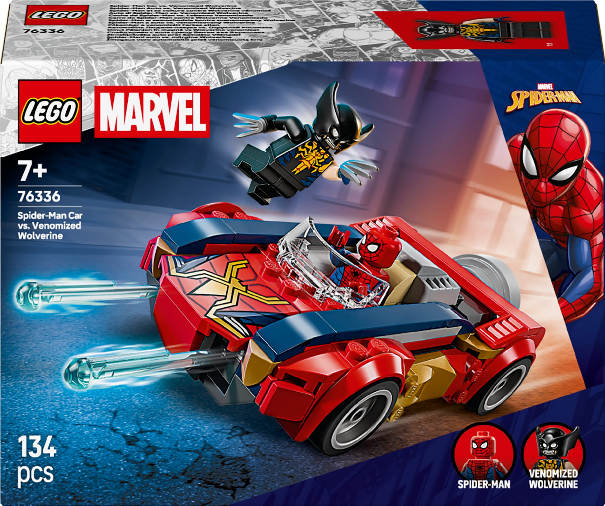 - Zabawa w superbohaterów — ożyw przygody z filmów Marvela dzięki zestawowi LEGO® ǀ Marvel Spider-Man w samochodzie kontra zvenomowany Wolverine (76336) zawierającemu dwa pojazdy do zbudowania i dwie minifigurki LEGO