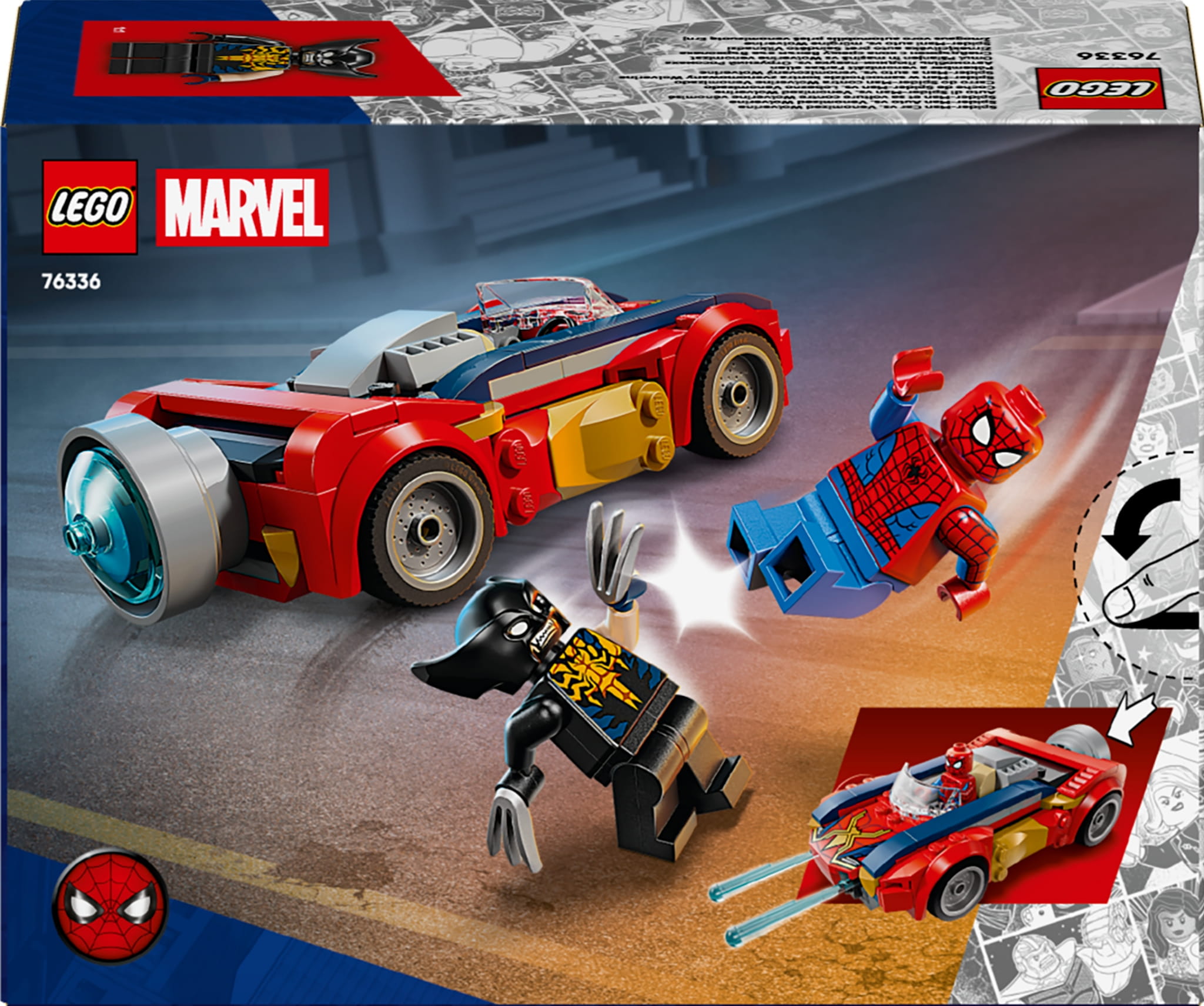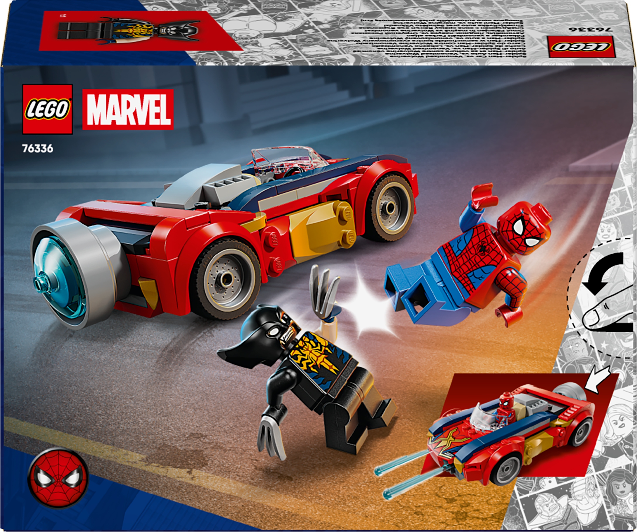 Zestaw konstrukcyjny z minifigurkami Spider-Mana i zvenomowanego Wolverine'a pozwala dzieciom wcielić się w ciekawe postacie z serii LEGO® ǀ Marvel. Jest to pierwszy zestaw LEGO ǀ Marvel zawierający minifigurkę zvenomowanego Wolverine'a. Akcja zestawu z superbohaterami rozgrywa się w samochodzie Spider-Mana. Z tyłu znajduje się przełącznik, który uruchamia dwie wyrzutnie sprężynowe z przodu.