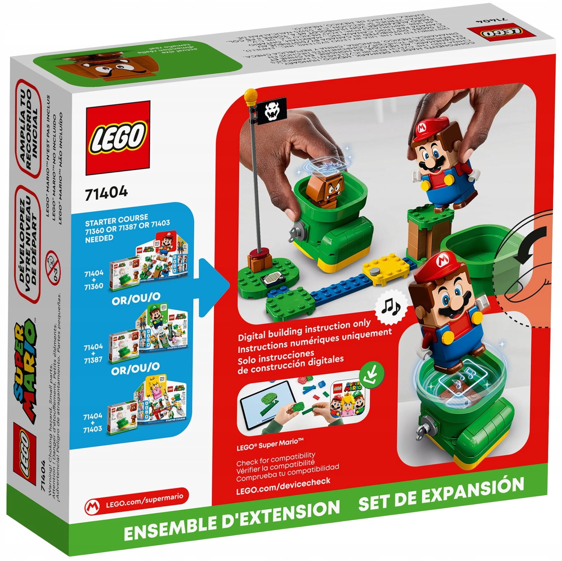 Zestaw But Goomby — zestaw rozszerzający (71404) pozwala dzieciom w wieku od sześciu lat przeżywać niesamowite przygody w świecie LEGO® Super Mario™. W komplecie są zbudowany z klocków but Goomby oraz figurka LEGO Goomby do urozmaicenia poziomów tworzonych przez dzieci. Pomóż LEGO® Mario™, LEGO® Luigiemu™ lub LEGO® Peach™ (figurki nie są częścią zestawu) zabrać but, a potem wskocz do niego i rób salta, aby zdobywać cyfrowe monety. (Uwaga: do interaktywnej zabawy wymagany jest zestaw startowy 71360, 71387 lub 71403).
