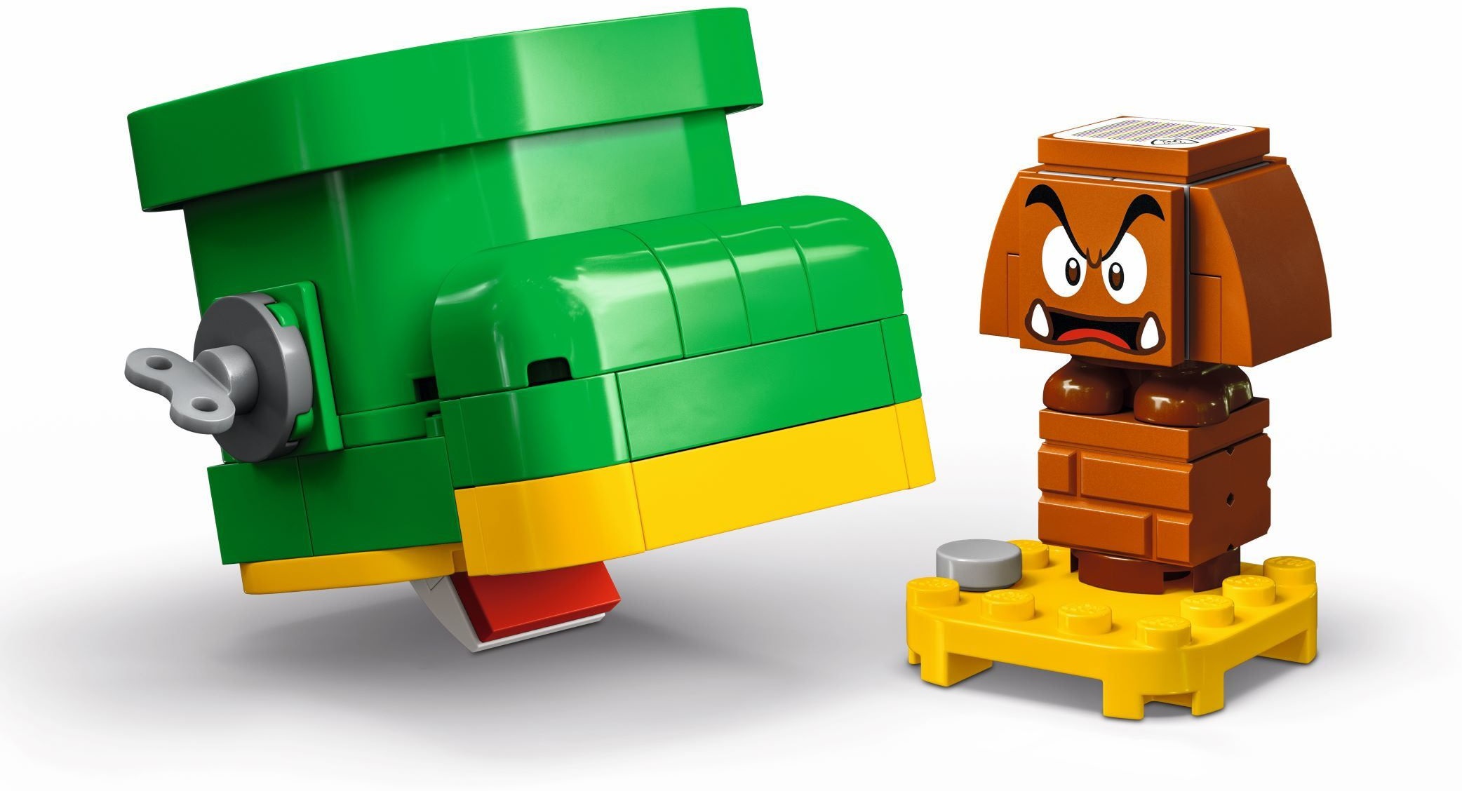 - Figurka LEGO® Goomby ze świata Super Mario™ — dzieci mogą wzbogacić swoje poziomy LEGO® Super Mario™, umieszczając Goombę w zbudowanym z klocków bucie, zupełnie jak w grach Super Mario