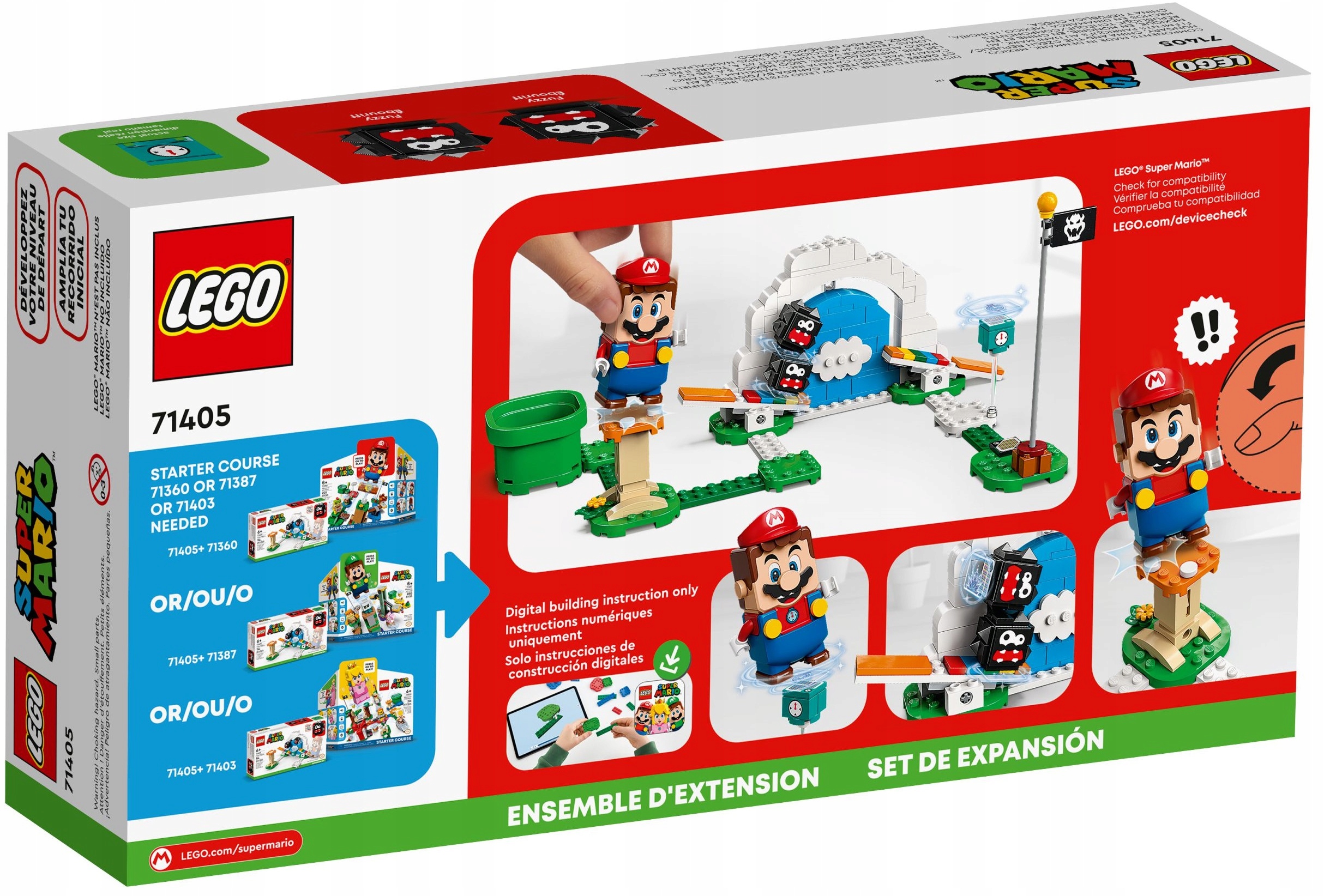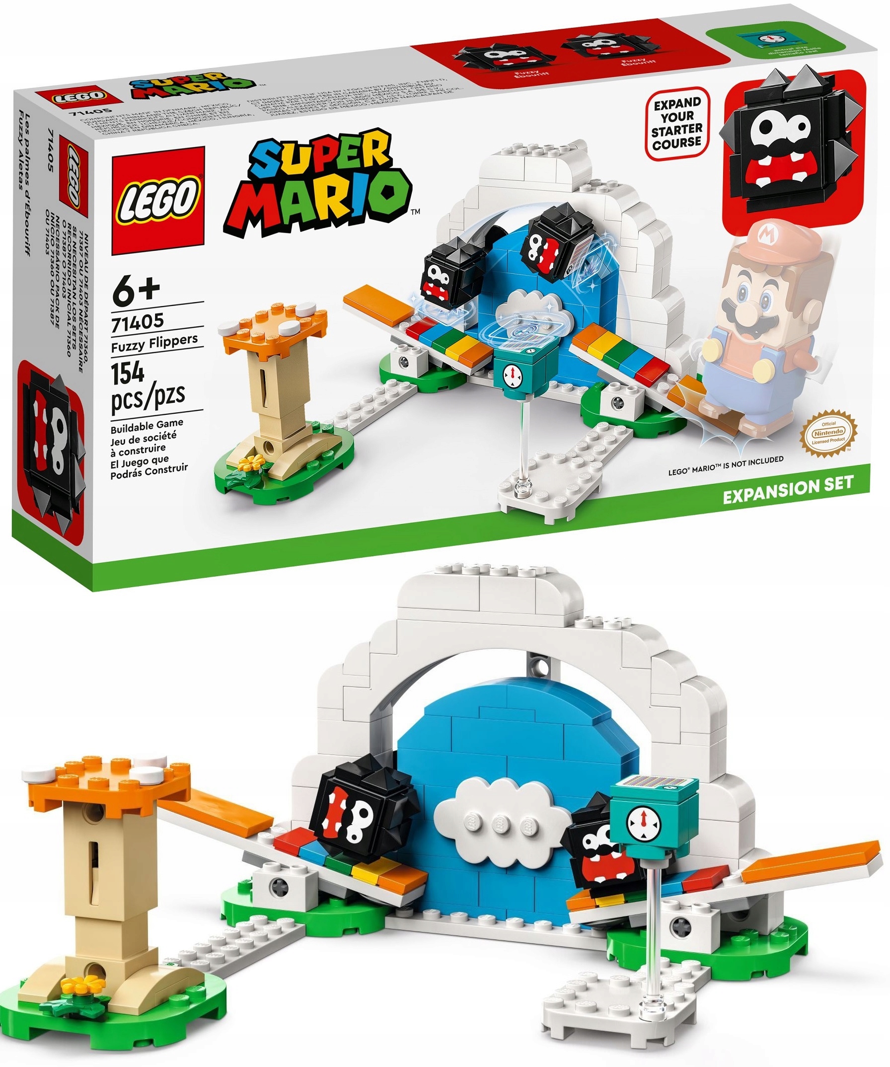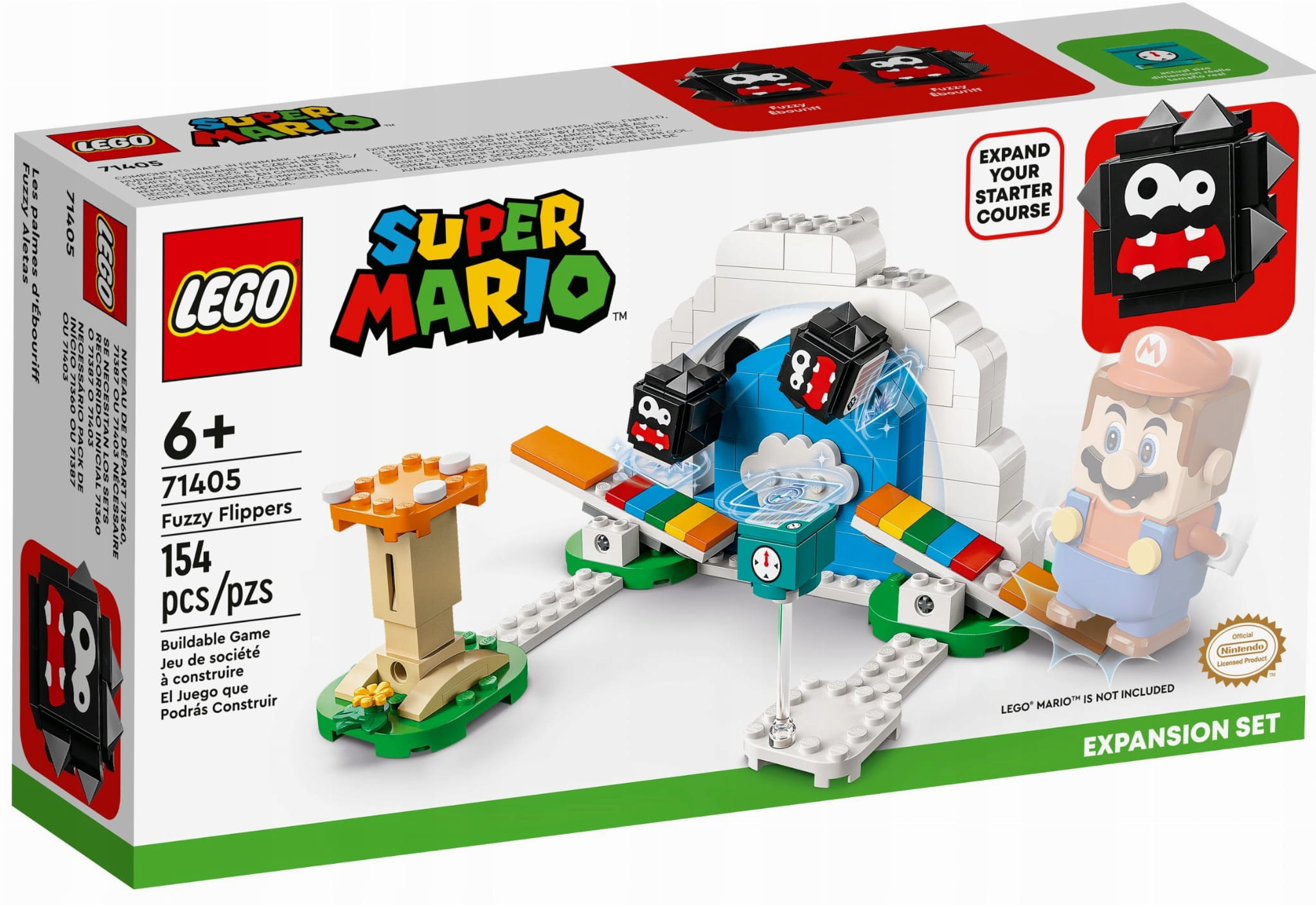 Dzieci w wieku od sześciu lat mogą wzbogacić swoje poziomy LEGO® Super Mario™ o podniebne wyzwanie dzięki zestawowi Salta Fuzzy’ego — zestaw rozszerzający (71405). W komplecie jest model nieba i chmury do zbudowania, platformy dla dwóch figurek LEGO Fuzzych, a także grzybowa trampolina i blok czasu. Pomóż LEGO® Mario™, LEGO® Luigiemu™ lub LEGO® Peach™ (figurki nie są częścią zestawu) wybić się z grzybowej trampoliny i nadepnąć na oba końce platform, aby strącić Fuzzych i zdobyć cyfrowe monety. (Uwaga: do interaktywnej zabawy wymagany jest zestaw startowy 71360, 71387 lub 71403).
