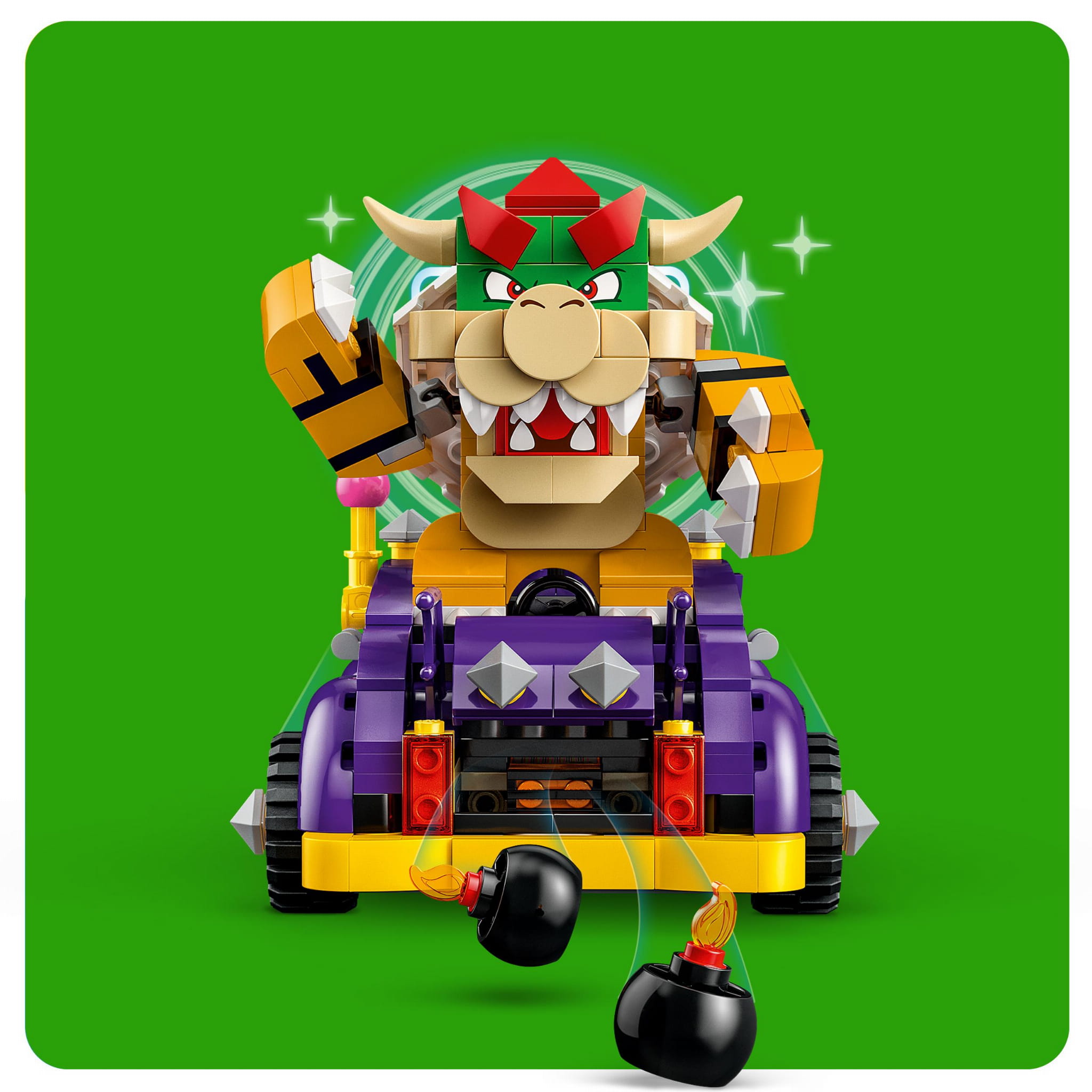 - Muscle car Bowsera dla dzieci — przygotuj się na jazdę bez trzymanki, poważne bitwy i odgrywanie ról dzięki temu zestawowi rozszerzającemu LEGO® Super Mario™