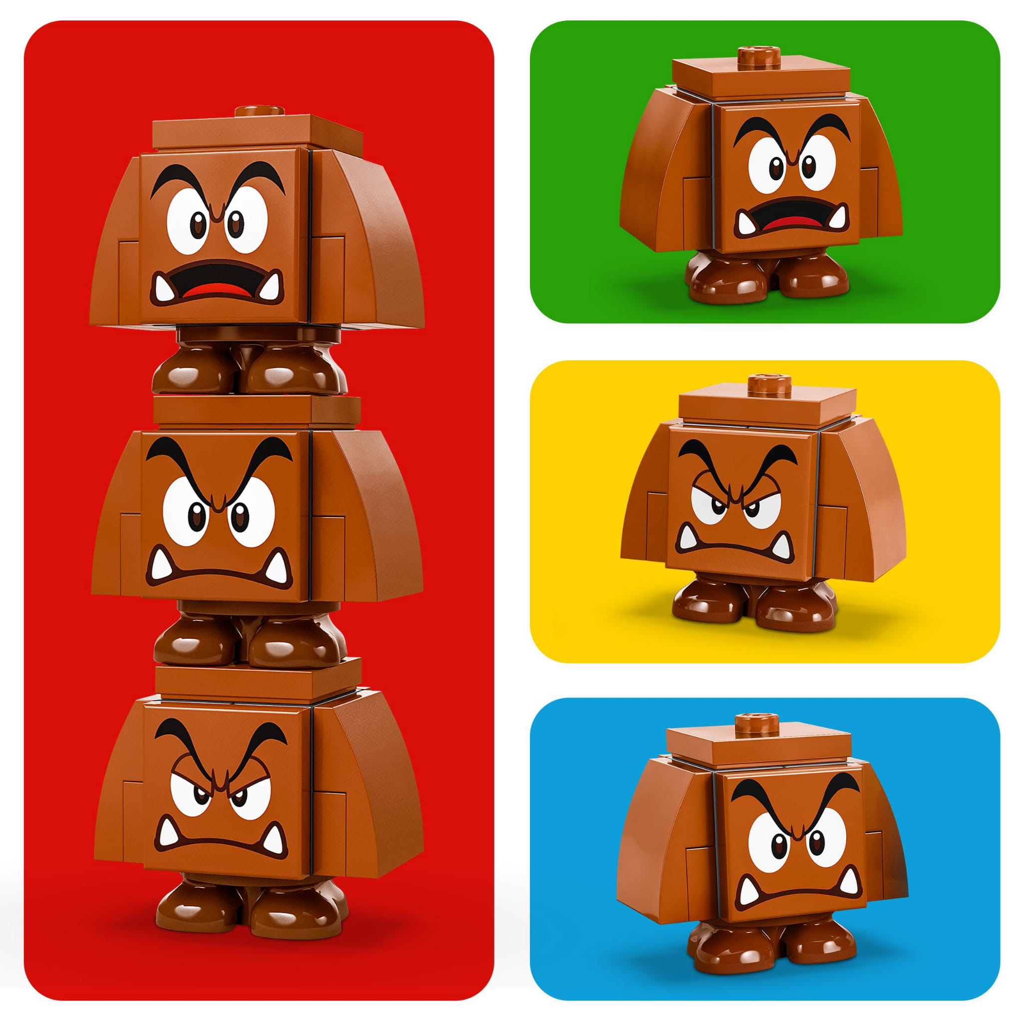- Trzy figurki Goombów LEGO® Super Mario™ — można je ustawiać na sobie