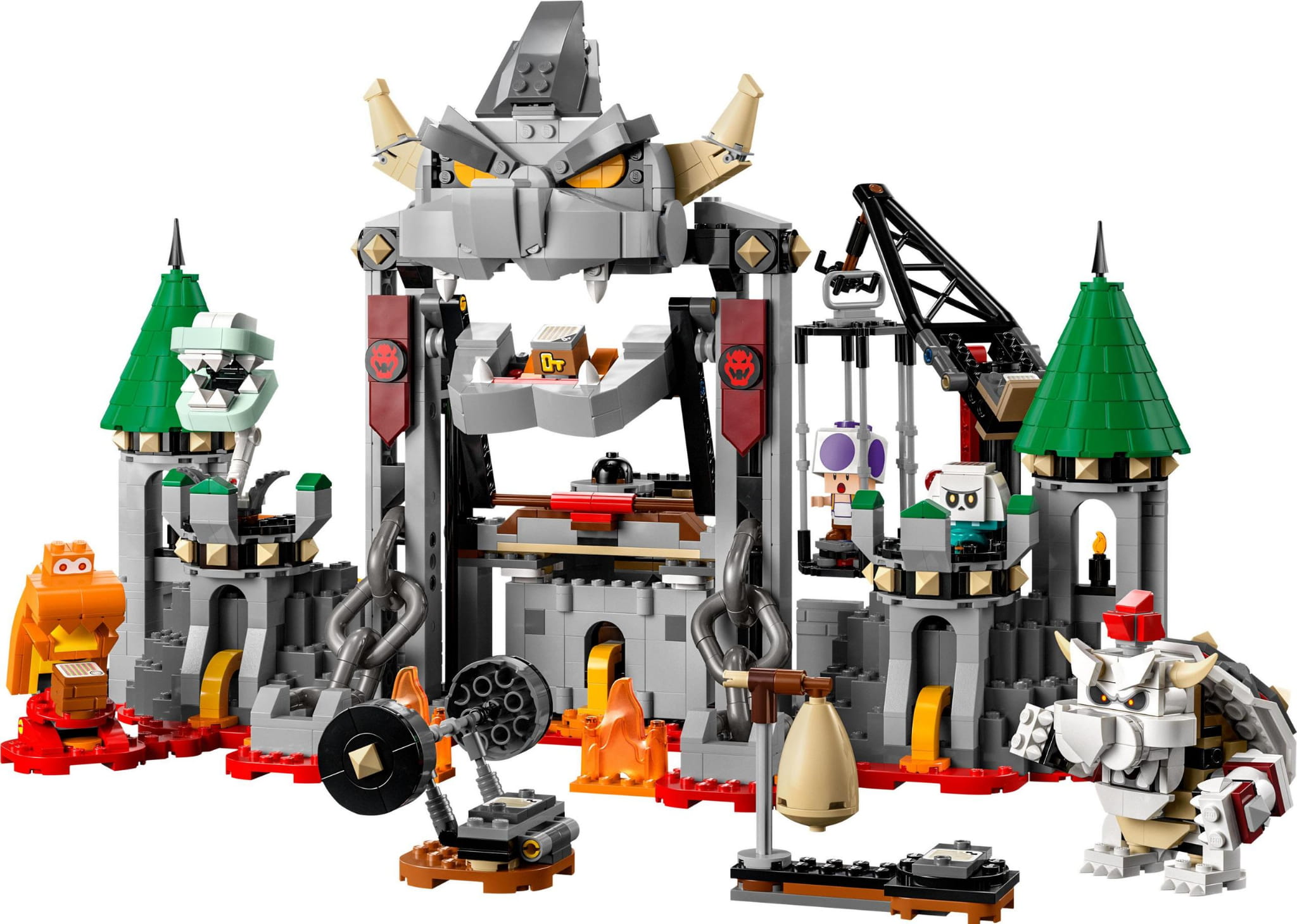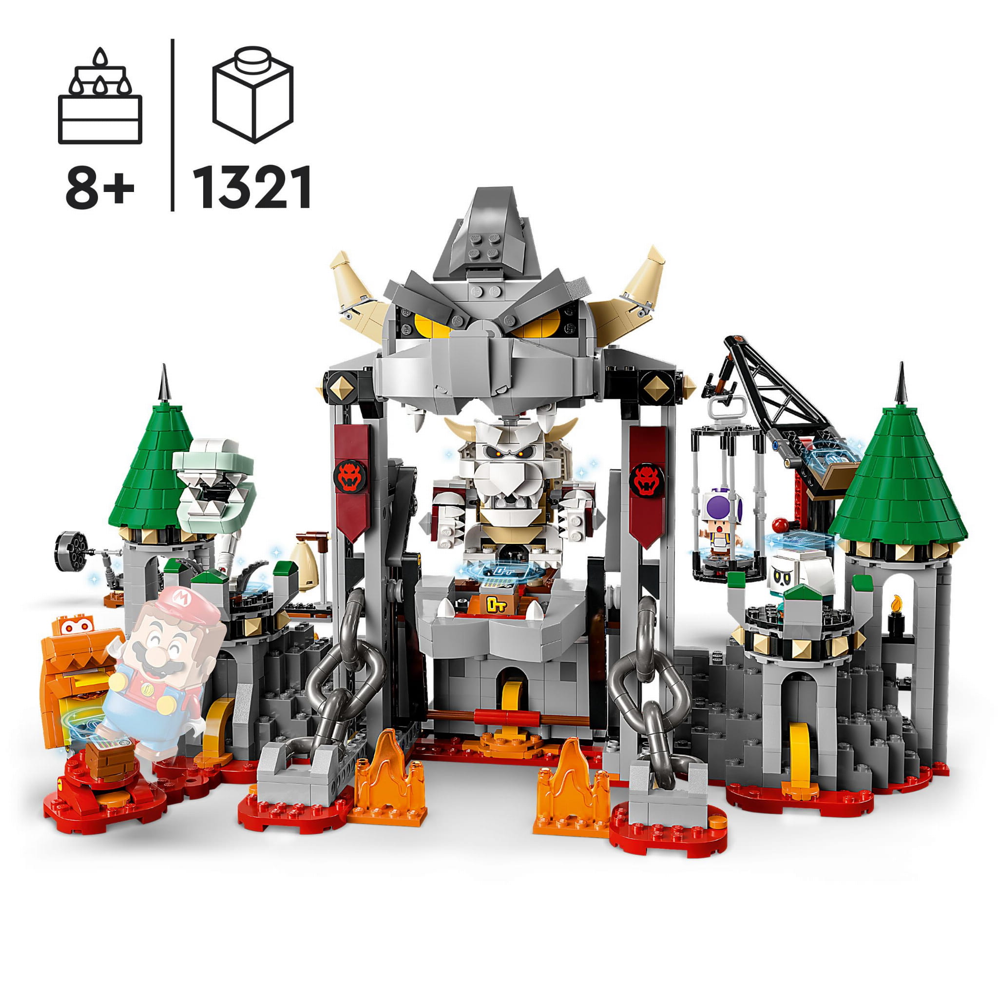 Walcz ze szkieletowymi wrogami i uratuj Purple Toada przed Dry Bowserem w zamku dzięki temu pełnemu akcji dodatkowi LEGO Super Mario dla dzieci. Uratuj Purple Toada przed Dry Bowserem! Stwórz fantastyczną wersję legendarnego miejsca z uniwersum Super Mario z klocków LEGO, korzystając z zestawu rozszerzającego Walka w zamku Dry Bowsera (71423). Gracze mogą zwiedzać zamek z interaktywną figurką LEGO Peach, LEGO Mario lub LEGO Luigi (brak w zestawie). Zawiera otwierane wejście w kształcie szczęki Bowsera, dźwig do uratowania Purple Toada z pułapki i obalenia Dry Bowsera, płetwy do pokonania Kościanego Kwiatka Piranii i Bone Goomby, funkcję ataku Magmaargh, siłownię, tajne wejście, tajną salę strategiczną, blok z kluczem i blok ze skrzynią skarbów.
