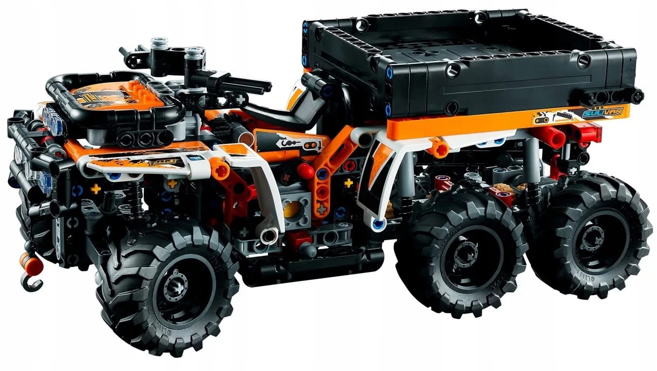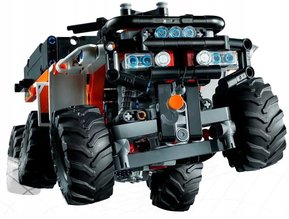 - Realistyczne funkcje — ten model to pierwszy sześciokołowy pojazd terenowy z serii LEGO® Technic wyposażony w mnóstwo autentycznych funkcji, takich jak silnik z ruchomymi tłokami i skrzynia biegów z dwoma biegami (oraz biegiem jałowym)