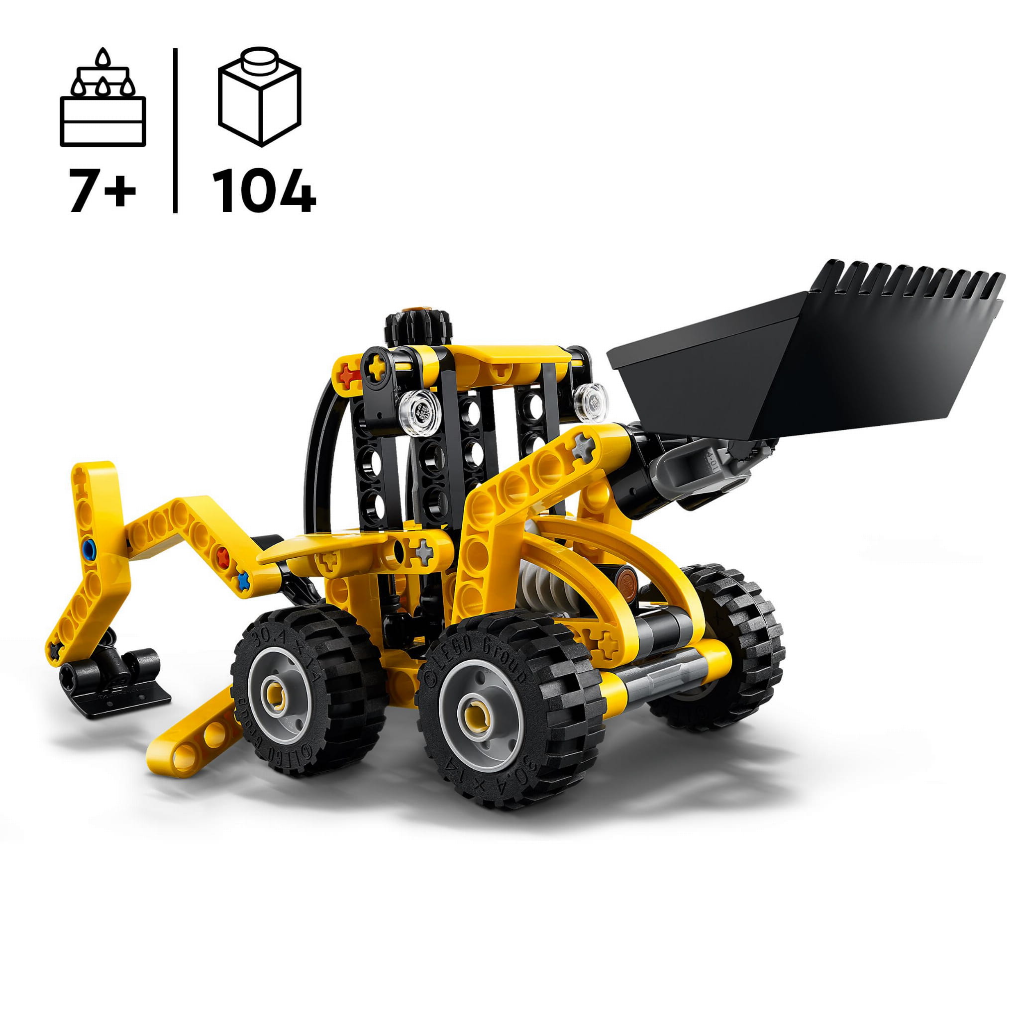 - Funkcja łyżki i koparki — model koparko-ładowarki LEGO® Technic zawiera łyżkę, którą dzieci mogą podnosić i opuszczać za pomocą pokrętła, tylną koparkę oraz podpory