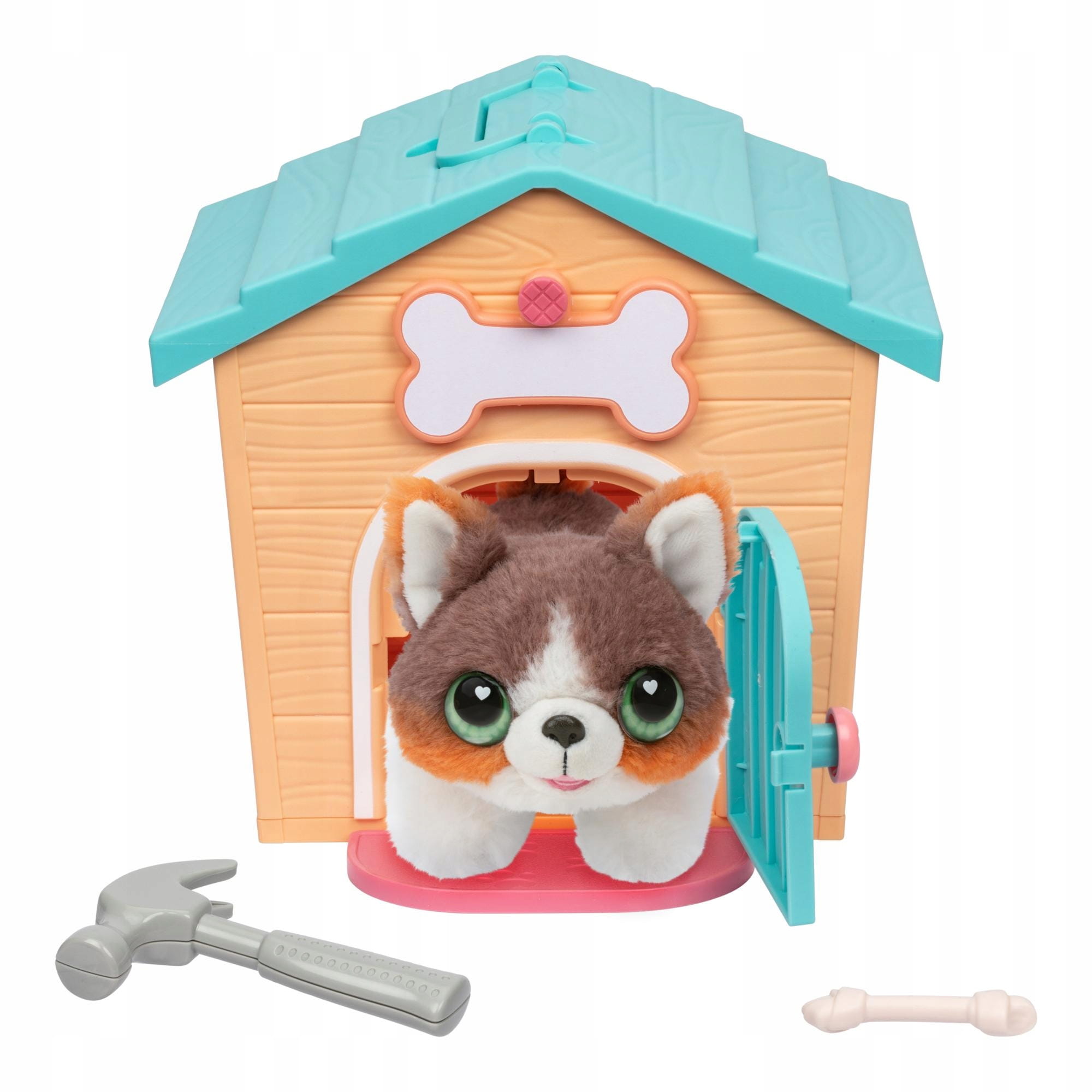 Zawartość zestawu: 1 x pluszowy szczeniak 1 x domek 1 x Zabawka kość 1 x wycieraczka 1 x tabliczka z imieniem 1 x arkusz naklejek 2 x gwoździe zabawkowe 1 x młotek 1 x certyfikat adopcji 1 x instrukcja obsługi